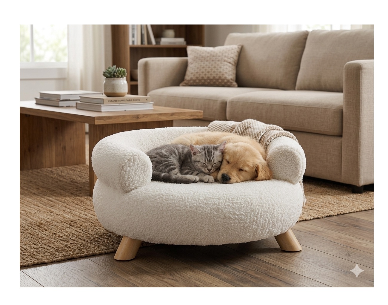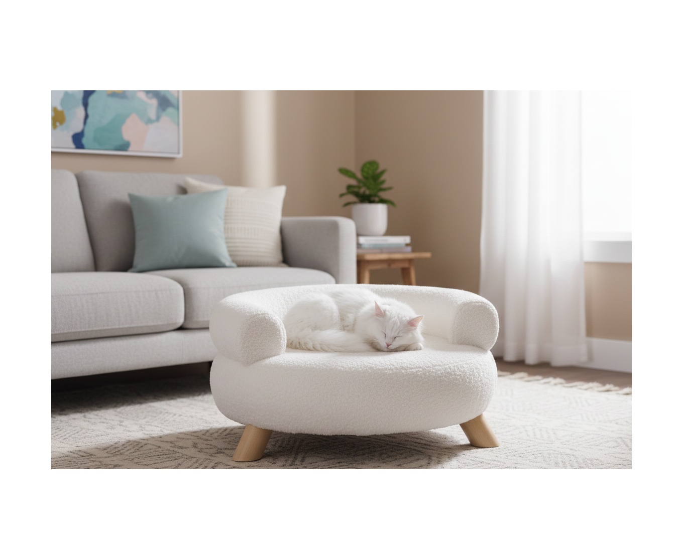 Offrez à votre compagnon un couchage doux, élégant et cocooning avec le sofa Deteno rond blanc. Son design façon mini canapé apporte une touche déco lumineuse à votre intérieur tout en offrant à votre animal un véritable coin détente, confortable et rassurant.