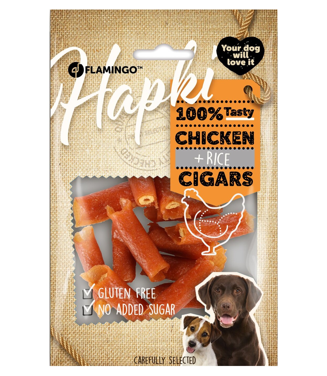 Offrez à votre chien adulte une friandise savoureuse et équilibrée avec les Rice Cigar Hapki au poulet et riz.