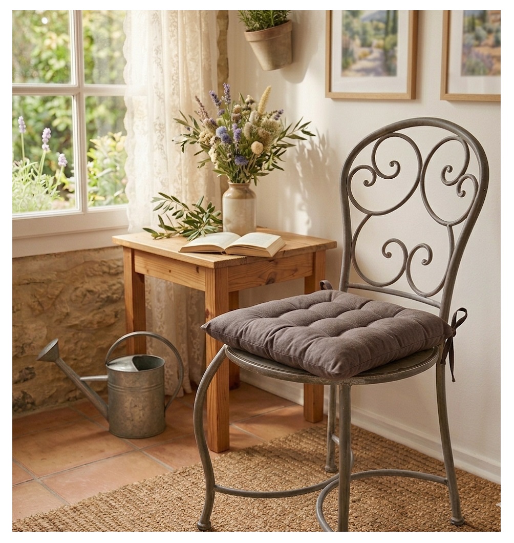 Confectionnée en 100% coton avec un garnissage en coton recyclé, elle offre un toucher doux et une assise agréable au quotidien.
