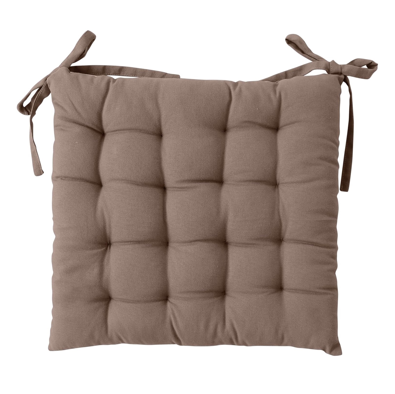 Caractéristiques : • Dimensions : 38 x 38 cm • Forme : carrée • Coloris : taupe • Matière : 100% coton • Garnissage : 100% coton recyclé • Tissu : half panama • Finition : matelassé 16 points • Fixation : 4 nouettes • Certification : BSCI • Confort : moelleux et durable