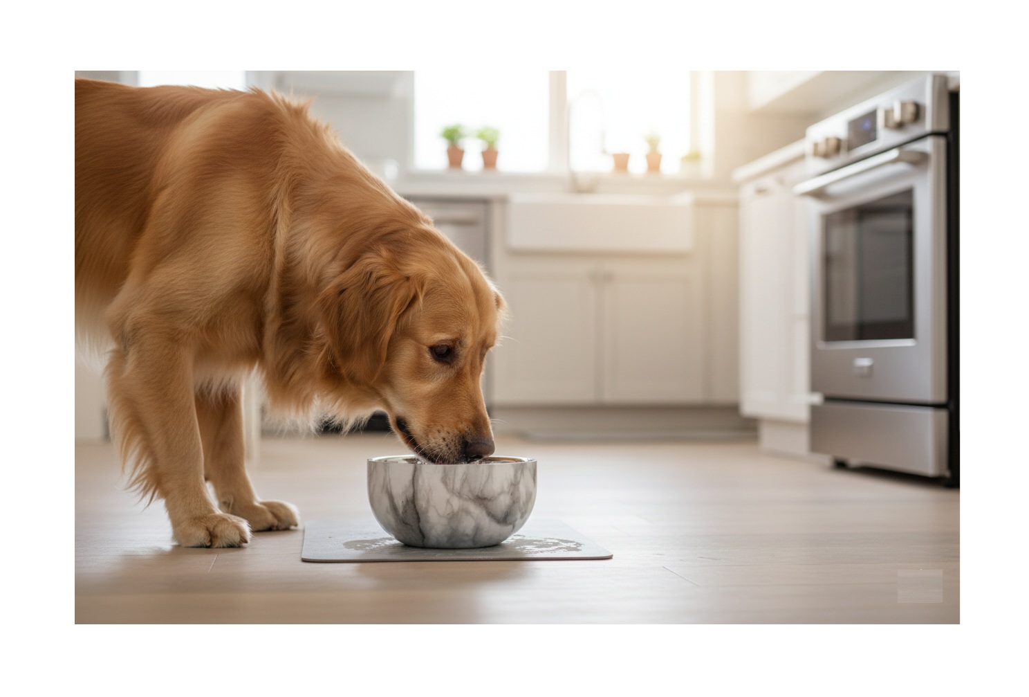 Gamelle Oase ronde pour la nourriture et l’eau, au design élégant effet marbre. Conçue pour un usage quotidien, elle associe esthétique moderne et fonctionnalité pour le confort de votre chien.