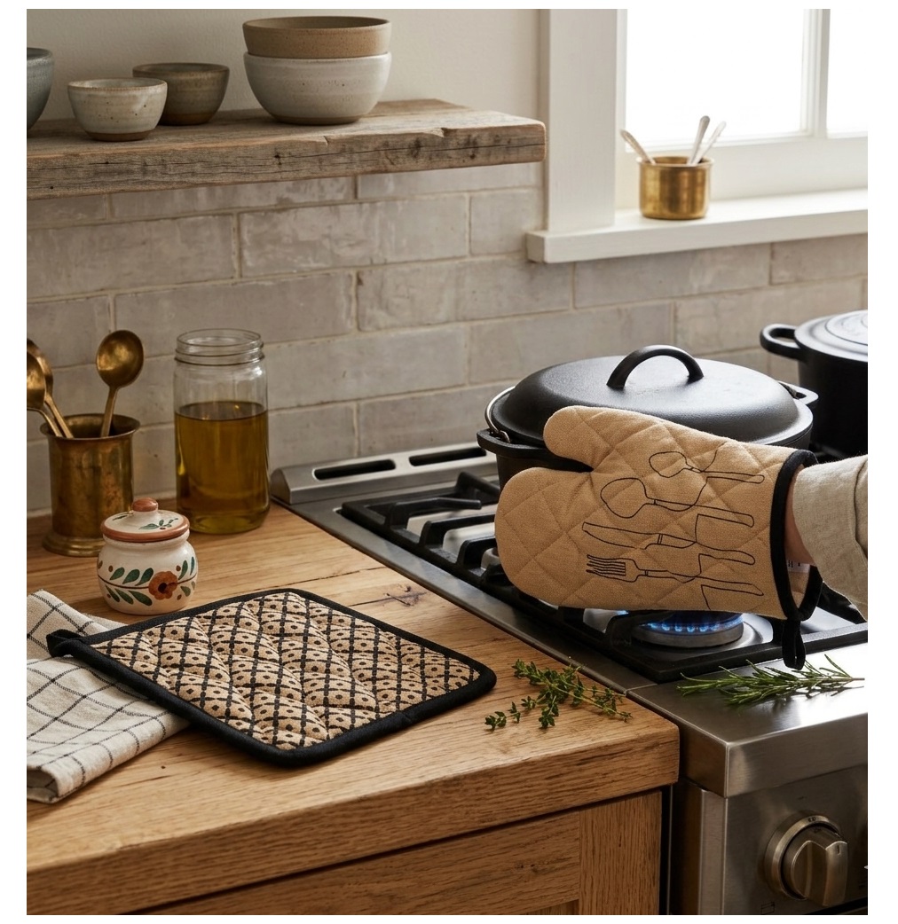Protégez vos mains avec style grâce au gant et à la manique de cuisine Cuisiline.