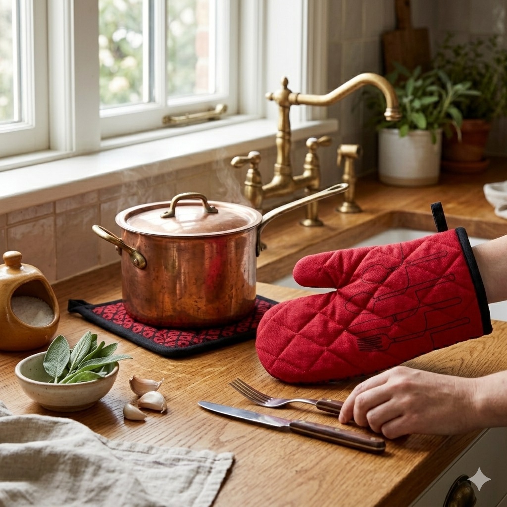 Protégez vos mains avec style grâce au gant et à la manique de cuisine Cuisiline.