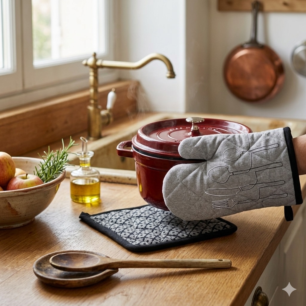 Protégez vos mains avec style grâce au gant et à la manique de cuisine Cuisiline.