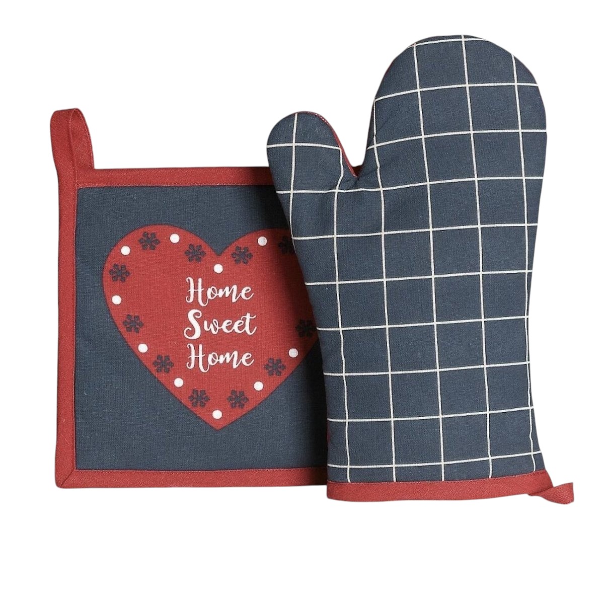 Découvrez notre lot gant + manique Sweet Home, parfait pour sortir vos plats du four sans risque de brûlure.