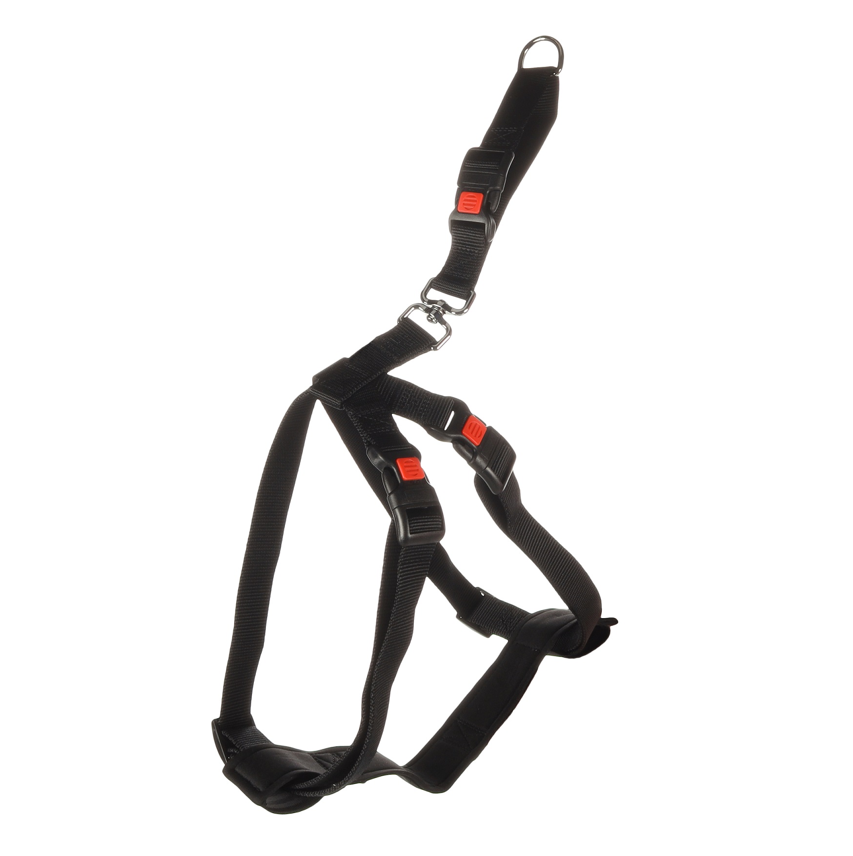 Polyvalent, il peut également être utilisé comme harnais de promenade, en forêt comme en ville, grâce à son anneau pour attacher une laisse.