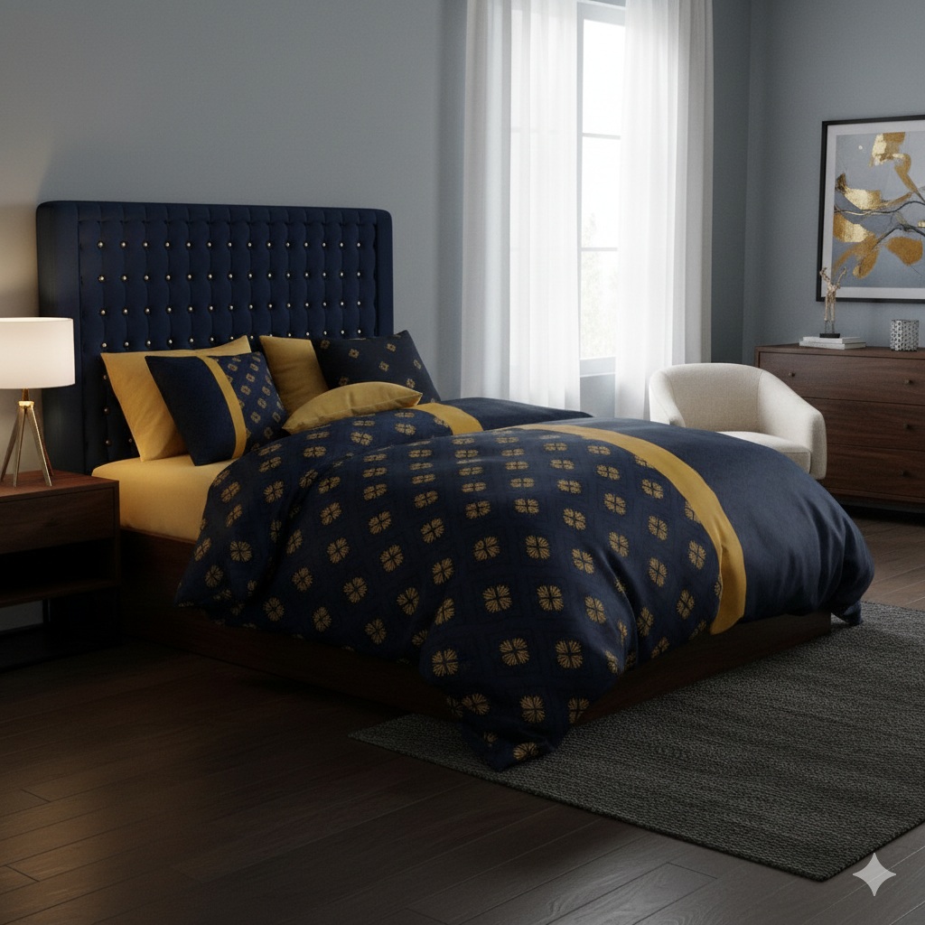 Son design raffiné mêlant motifs géométriques et couleurs profondes crée une atmosphère moderne et chaleureuse.