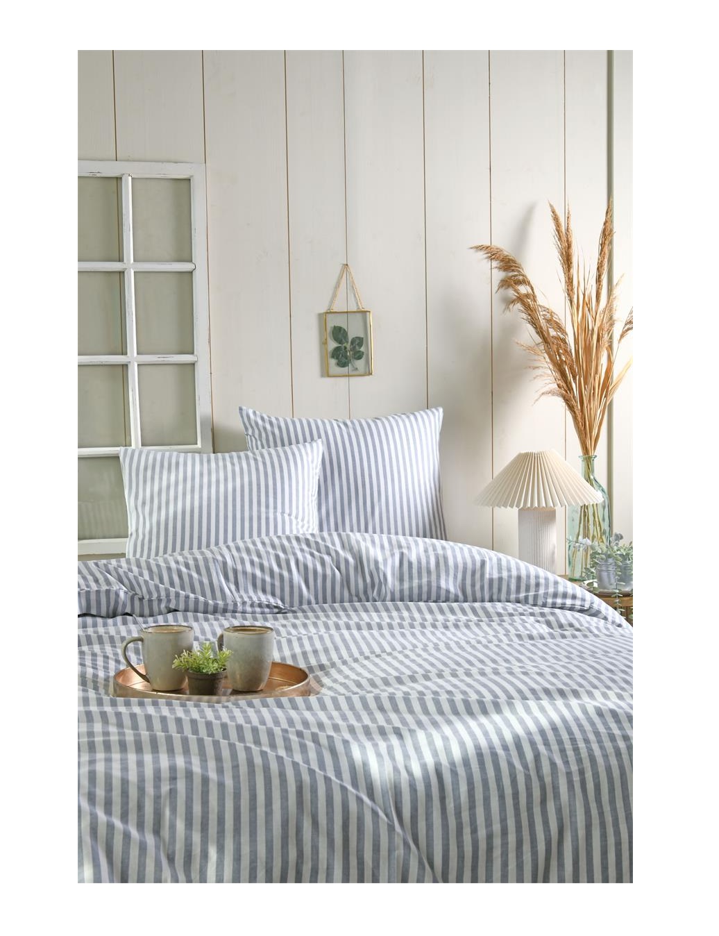 Confectionnée en coton 100 %, cette parure offre un toucher agréable, respirant et confortable, idéal pour un usage quotidien en toute saison. Son motif rayé, sobre et lumineux, s’intègre facilement dans une décoration classique, campagne chic ou contemporaine.