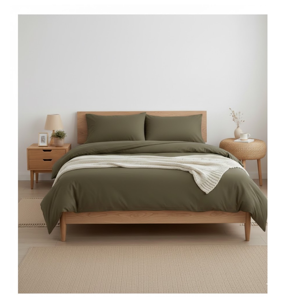 Housse de couette 140 x 200 cm Contemporain uni kaki