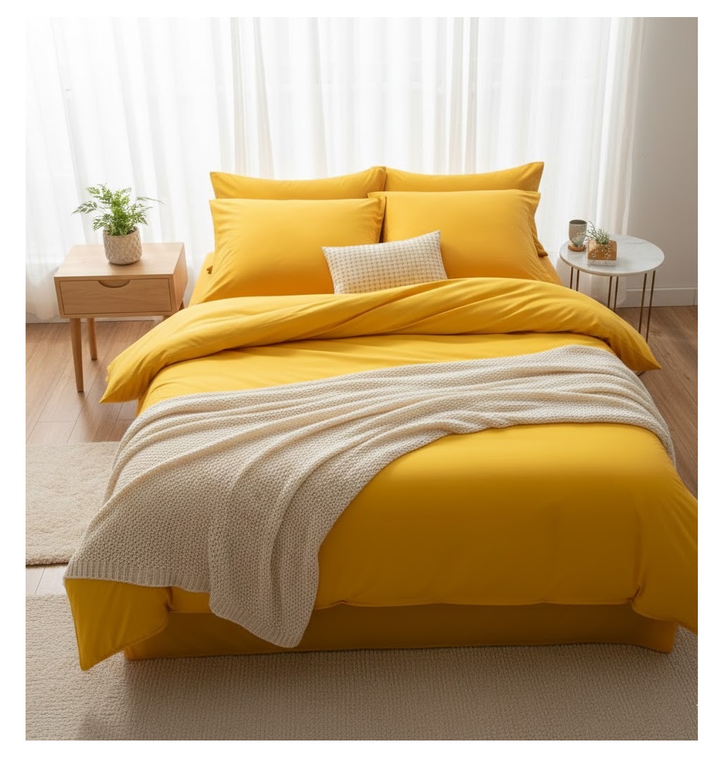 Housse de couette 140 x 200 cm Contemporain uni ocre