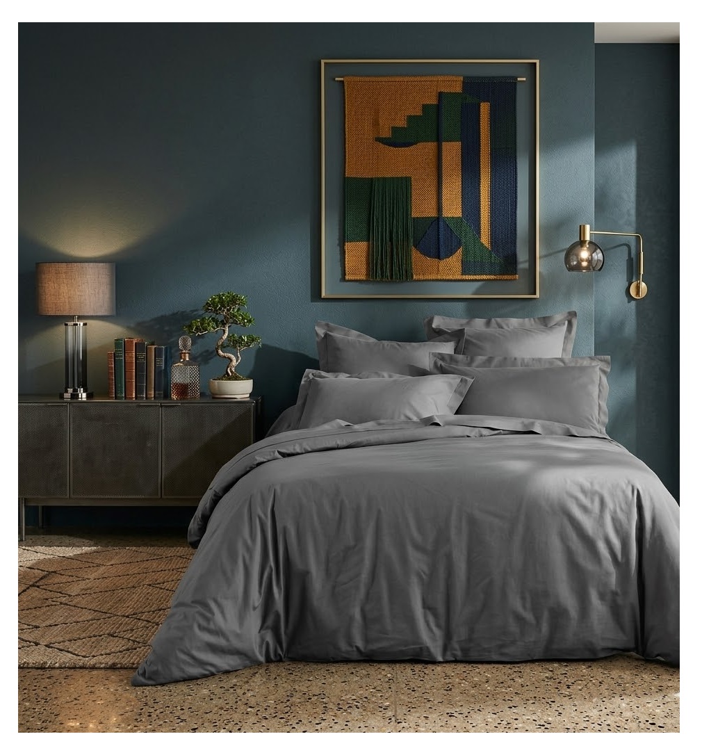 • Dimension : 260 x 240 cm (lit 2 personnes) • Matière : 100% coton • Finition : 57 fils/cm² – boutons-pressions • Couleur : anthracite • Entretien : lavage 30°C