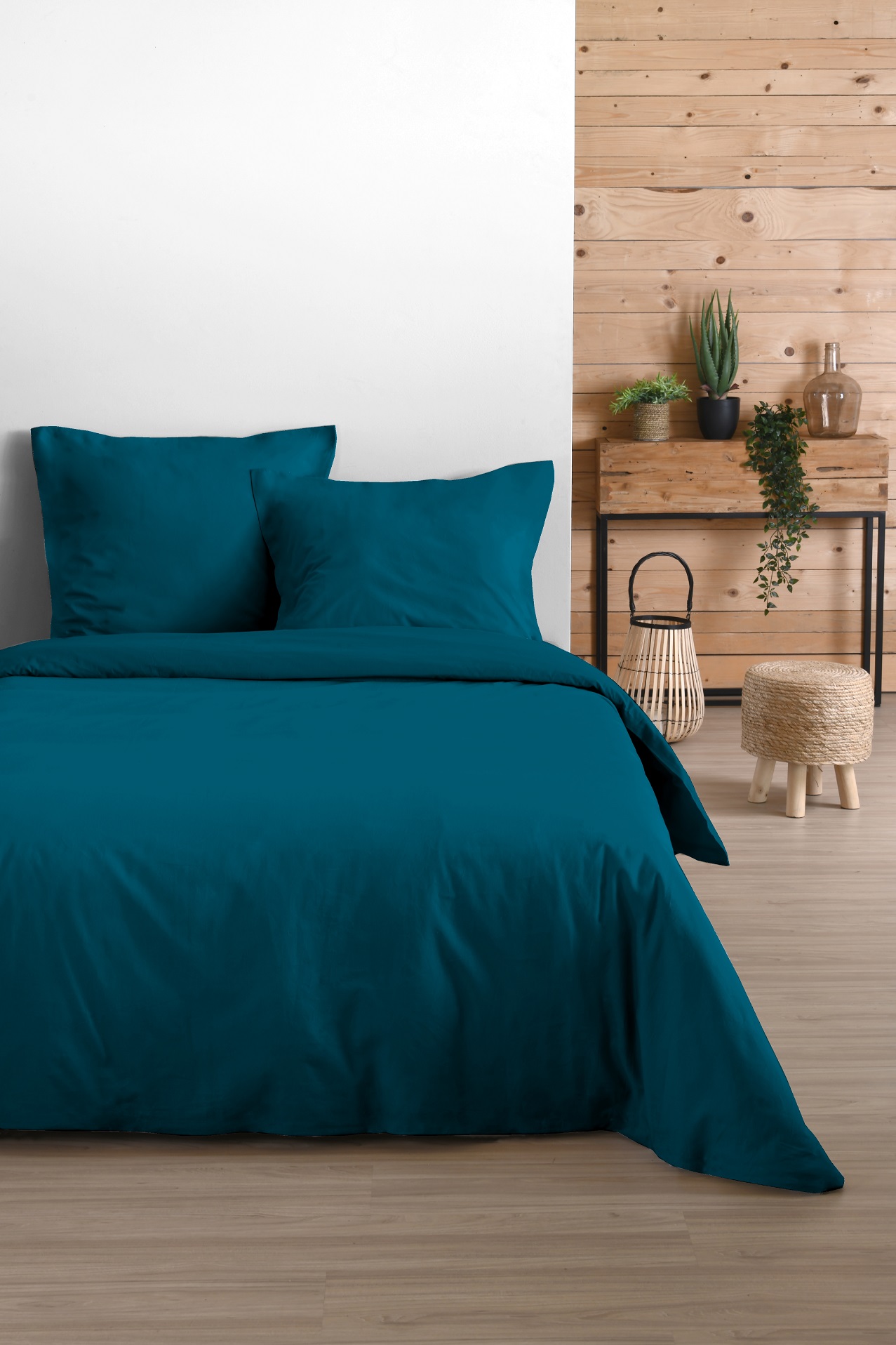 Housse de couette en coton 240 x 260 cm uni Edenne bleu pétrole
