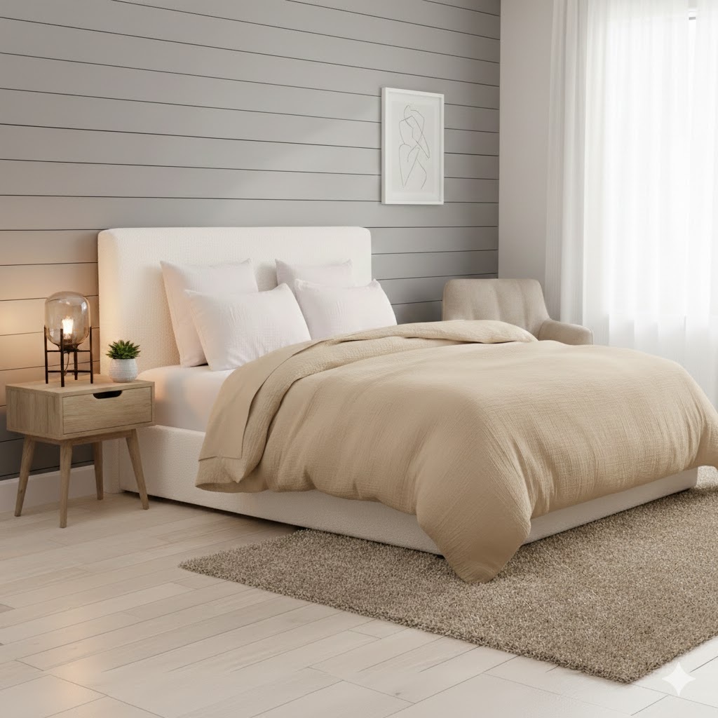 Confectionnée en 100 % satin de coton de qualité supérieure, cette parure est naturellement hypoallergénique et anti-acarien, idéale pour un sommeil sain.