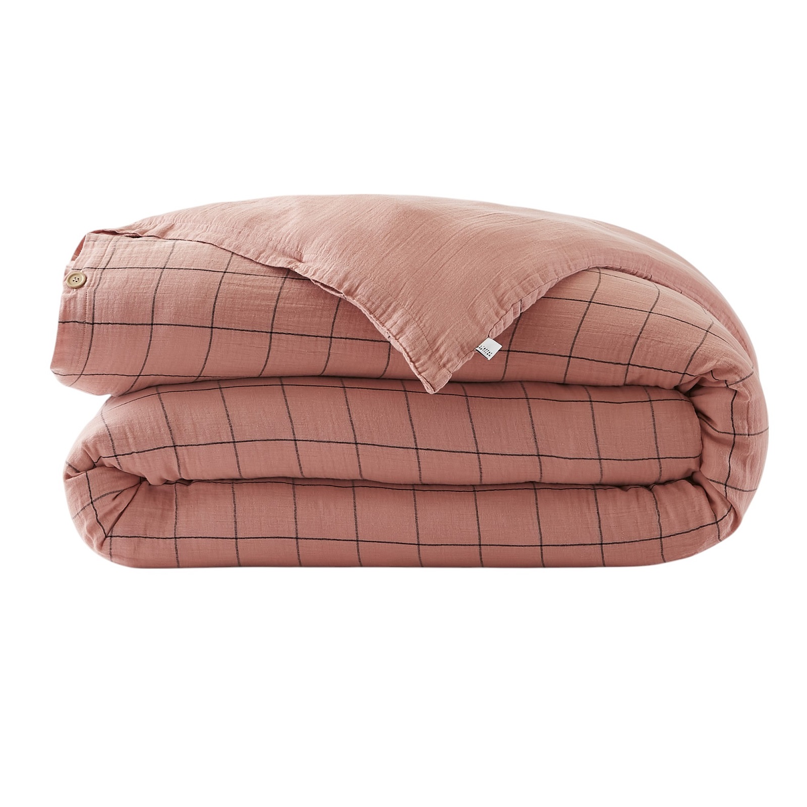 Apportez chaleur et naturel à votre chambre avec cette housse de couette en double gaze de coton 100%. Ultra douce et respirante, elle séduit par son effet froissé sans repassage, son motif à carreaux fins et sa fermeture par boutons bois pour un look authentique et cosy.