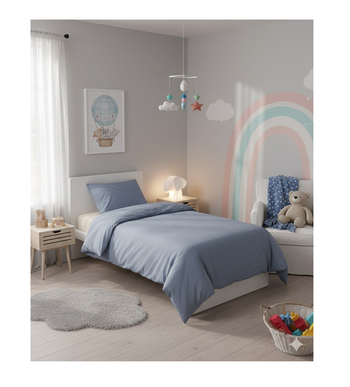 Offrez à votre enfant un cocon de douceur avec cette parure de lit en pur coton. Dans une teinte bleu ardoise tendance, elle apporte une touche de sérénité à la chambre, tout en assurant un confort optimal pour des nuits paisibles.