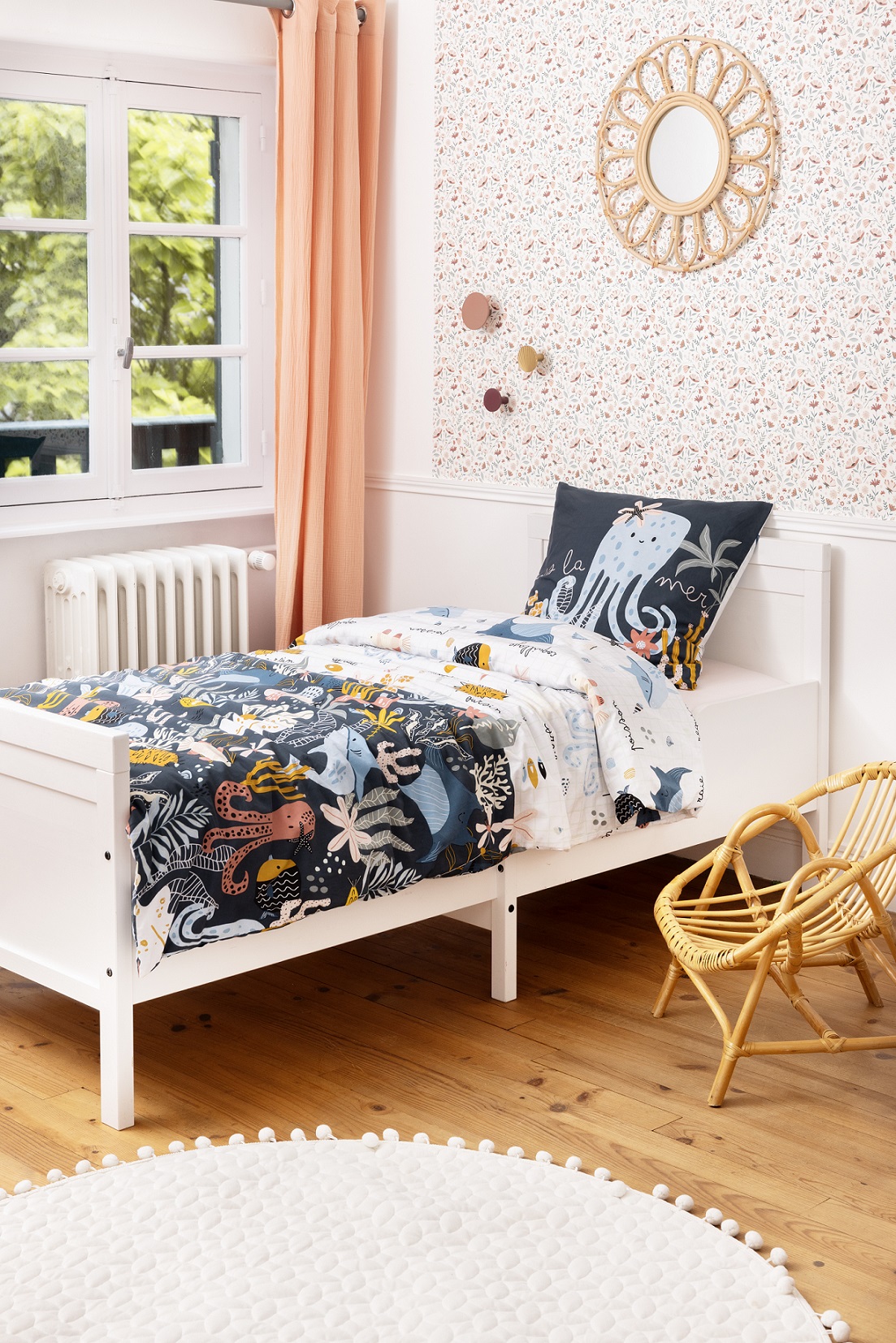 Finition: Couette: Ouverture à boutonnières dissimulées et ses boutons bois - Taie d’oreiller: Ouverture porte-feuille avec rabat