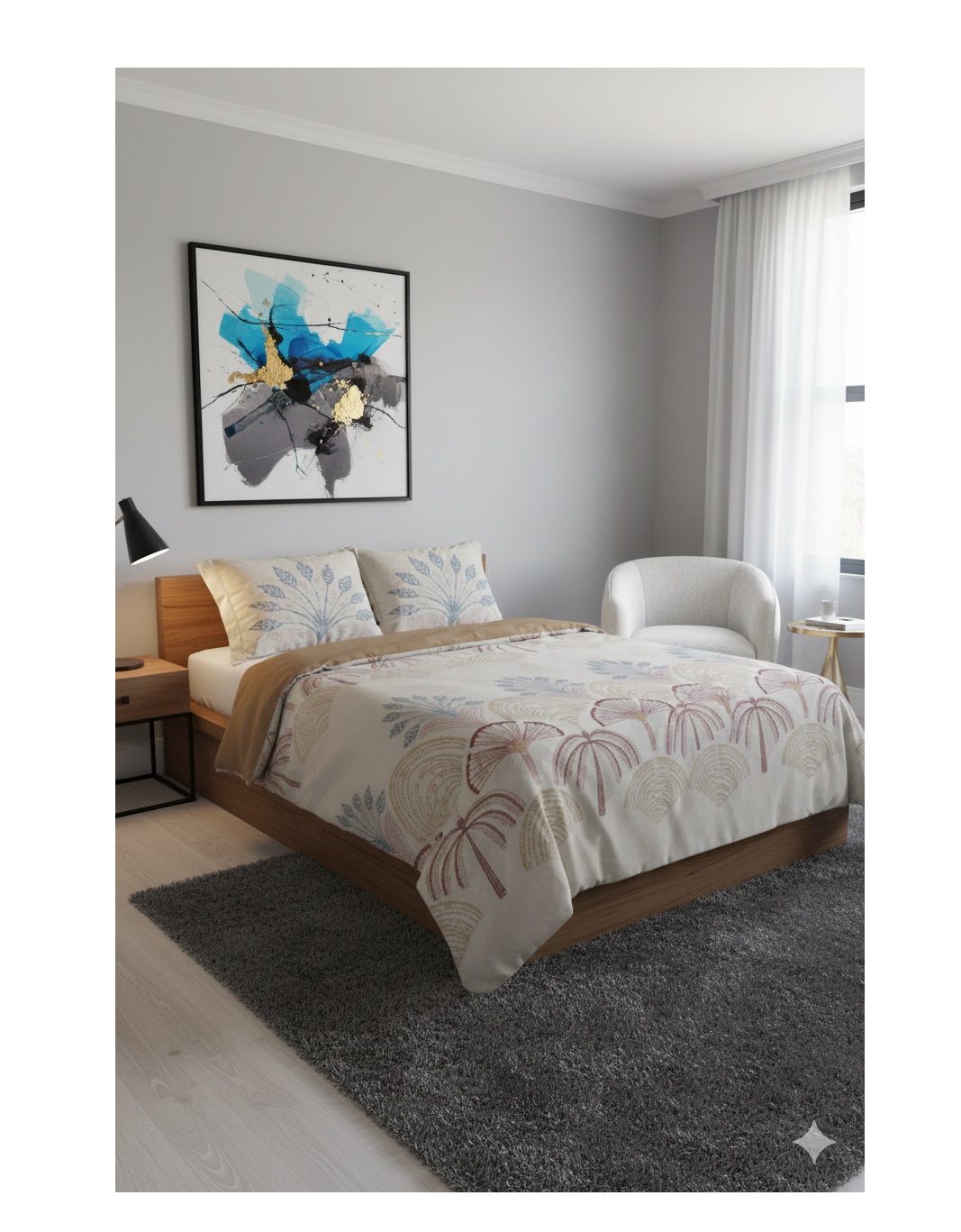 Cette belle parure de lit en coton vous invite à un voyage tropicale avec son imprimé palmiers colorés