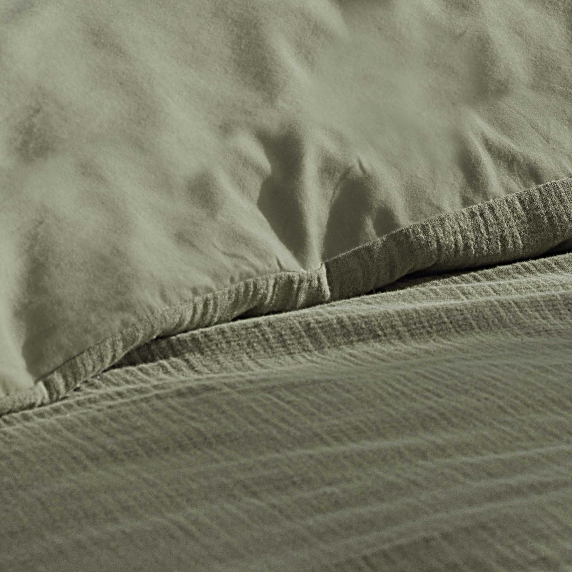 Housse de couette + 2 taies en gaze de coton 240 x 260 cm Tendance kaki