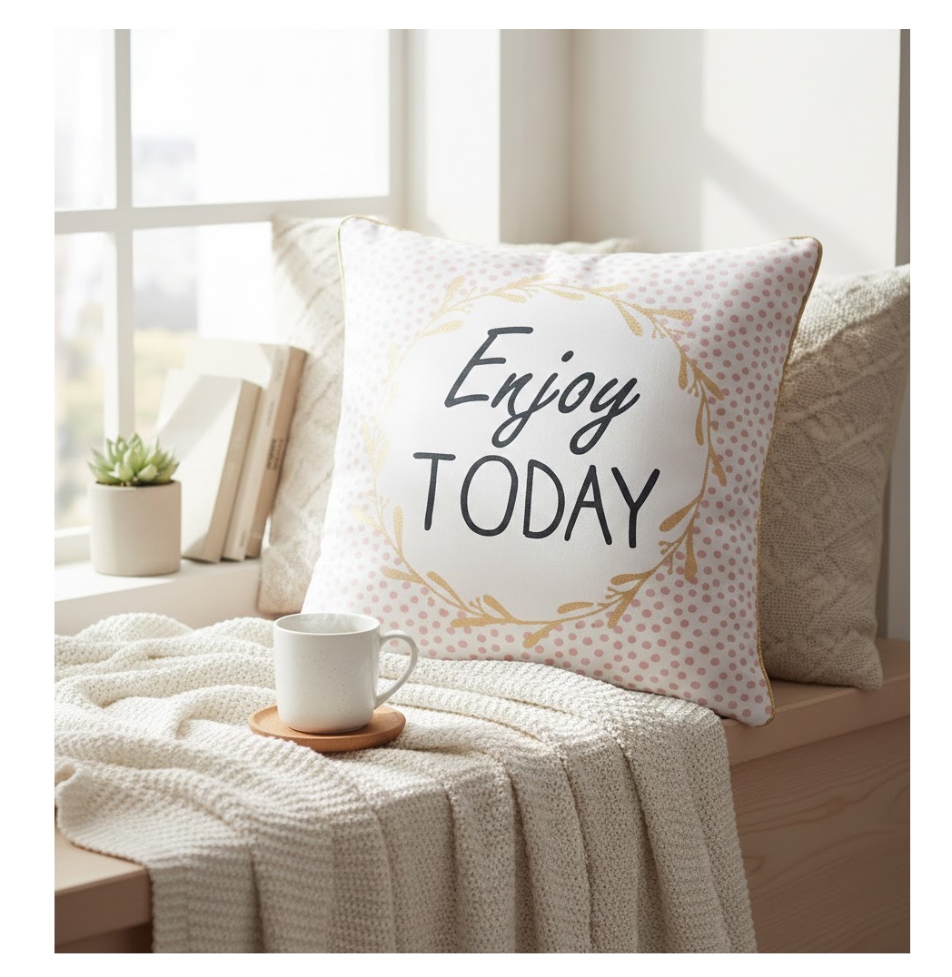 Que ce soit pour renouveler votre décoration ou pour offrir un cadeau original, la housse de coussin Enjoy Today est un choix pratique et esthétique, alliant confort et style au quotidien.