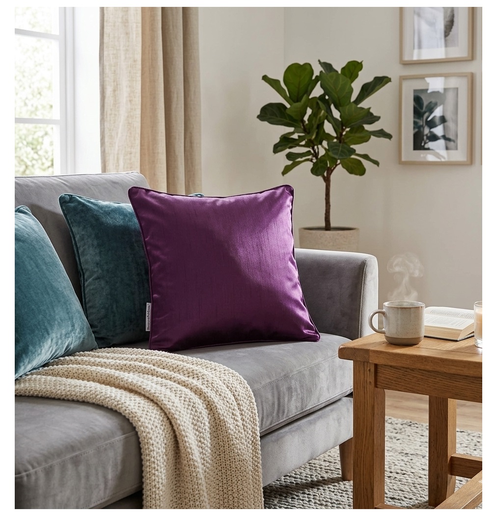 • Dimensions : 40 x 40 cm • Matière : 100% polyester • Couleur : prune • Fermeture : zip discret pour un changement facile