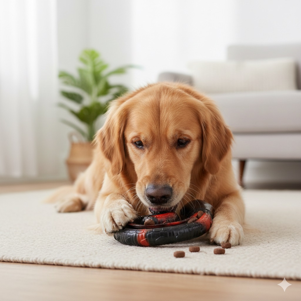 Ce jouet interactif peut être rempli de friandises, transformant chaque session de jeu en un moment ludique et gourmand.