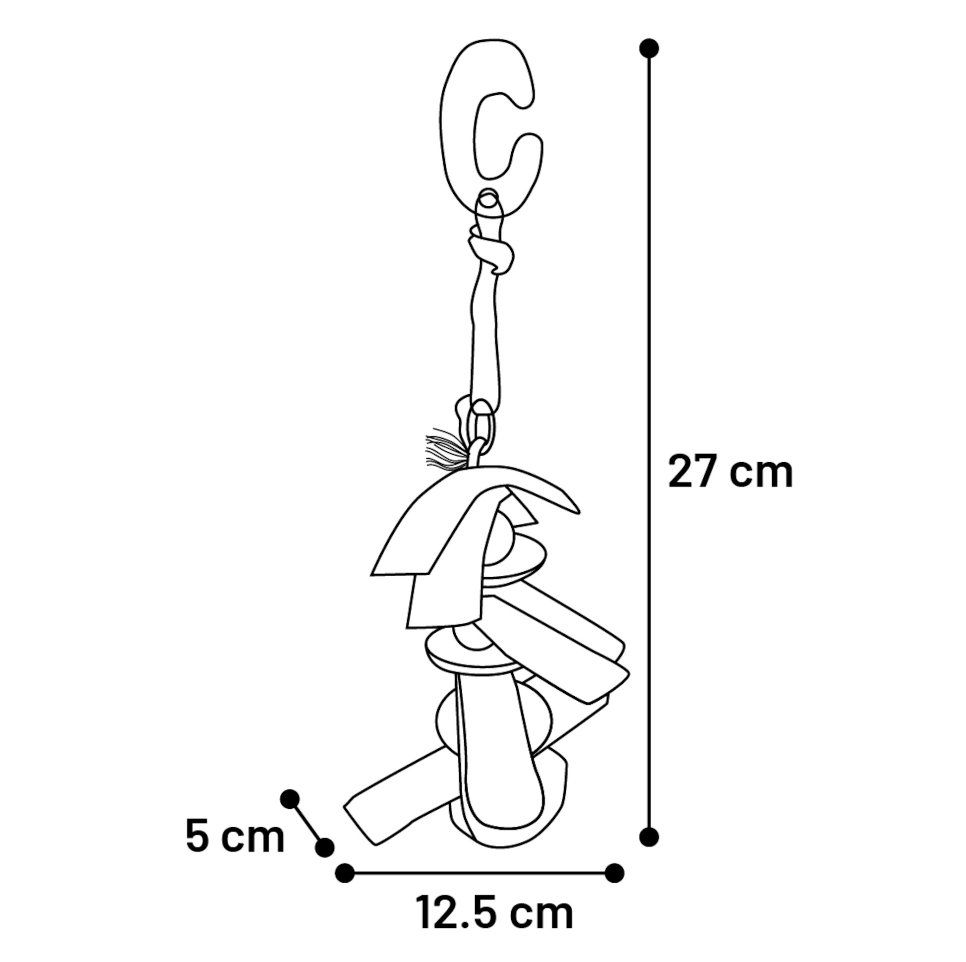 Sa structure variée attire l’attention et aide à limiter l’ennui. Facile à installer grâce à son crochet en bois, il s’intègre parfaitement dans la cage.