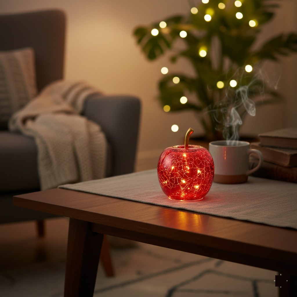 Apportez une touche chic et féérique à votre intérieur avec cette élégante pomme décorative en verre transparent, illuminée de l’intérieur par une guirlande de 10 LED. Son verre effet craquelé diffuse une lumière douce et scintillante, idéale pour créer une ambiance chaleureuse dans le salon, une chambre ou sur une table de fête.