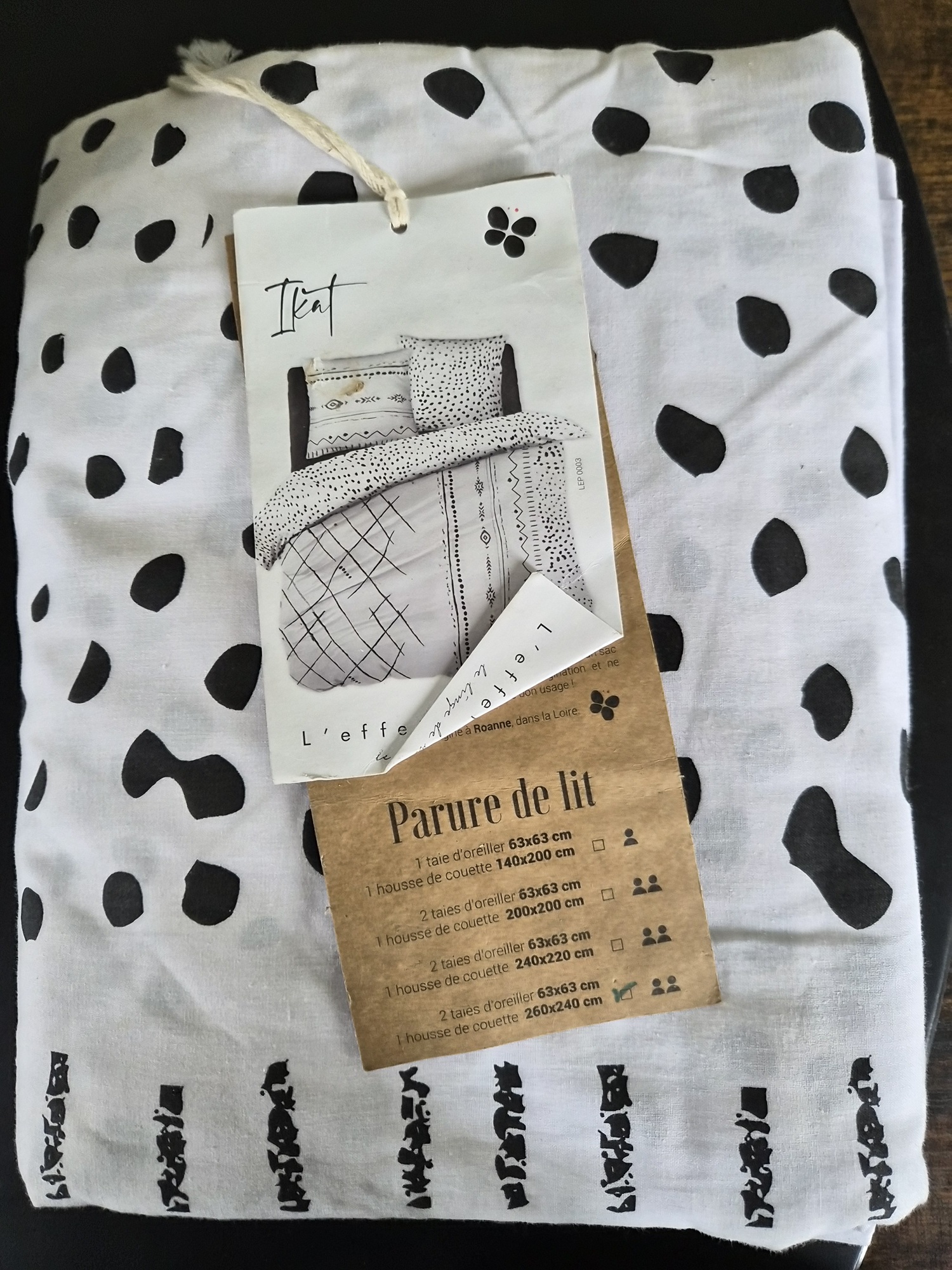 Accueil → LINGE DE MAISON → LINGE DE LIT → Parure housse de couette 260 x 240 cm Leboncoin Parure de lit 240 x 260 cm Ikat 15,00€ Produit en stocklivré sous (2 jours) Quantité: Description Parure de lit comprenant une housse de couette et deux taies Dimension 240 x 260 cm et deux taies 63 x 63 cm Matière 100% coton Sans emballage, parure tache voir photo L'avis des Clients Pas de note client (Mettre un commentaire en premier) Commentaires Votre avis ?