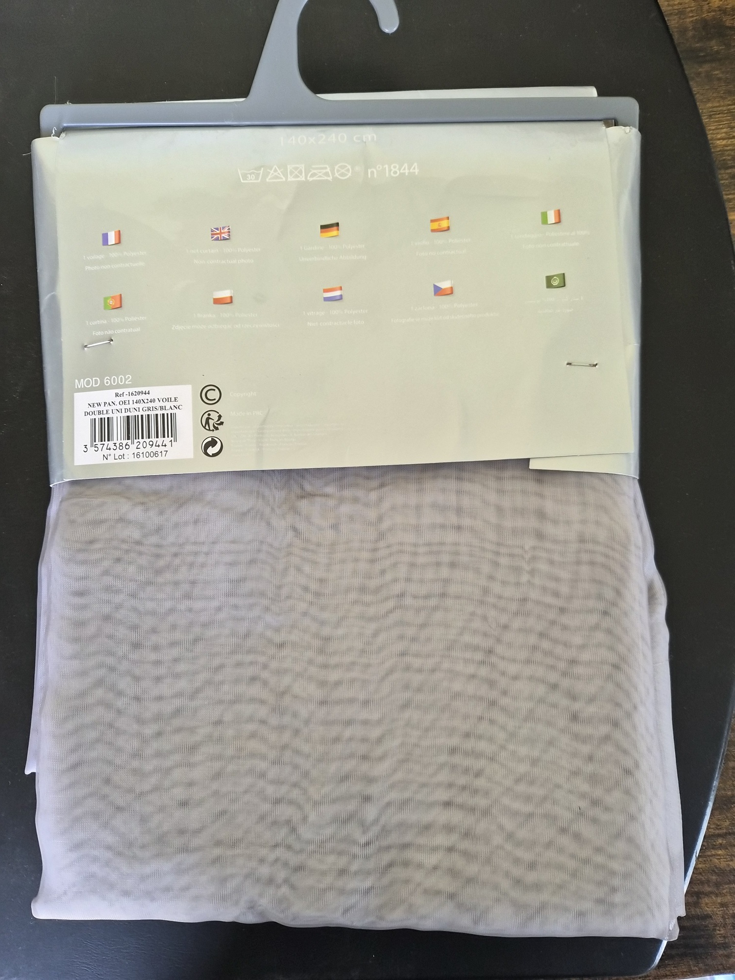 Accueil → LINGE DE MAISON → RIDEAU STORE VOILE ACCESSOIRE → Voilage Leboncoin Voilage 140 x 240 cm gris 8,00€ Produit en stocklivré sous (2 jours) Quantité: Description Voile double uni réversible prêt a poser Composition : 100% polyester Attaches : oeillets abimés rouillés voir photo Dimension : Largeur : 140 cm Longueur : 240 cm L'avis des Clients Pas de note client (Mettre un commentaire en premier) Commentaires Votre avis ?