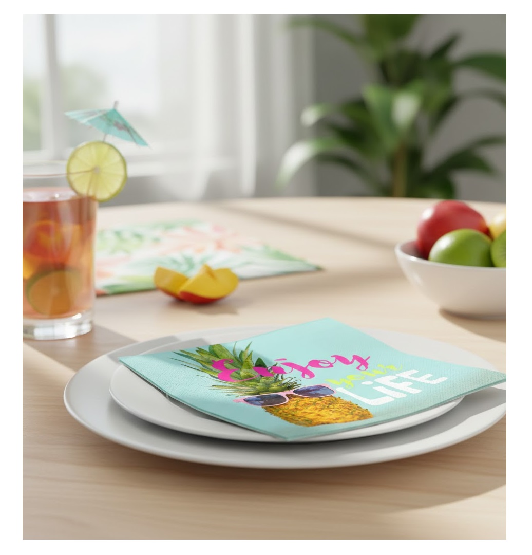 Des serviettes pratiques et décoratives pour une table pleine de fraîcheur et de bonne humeur 🌴