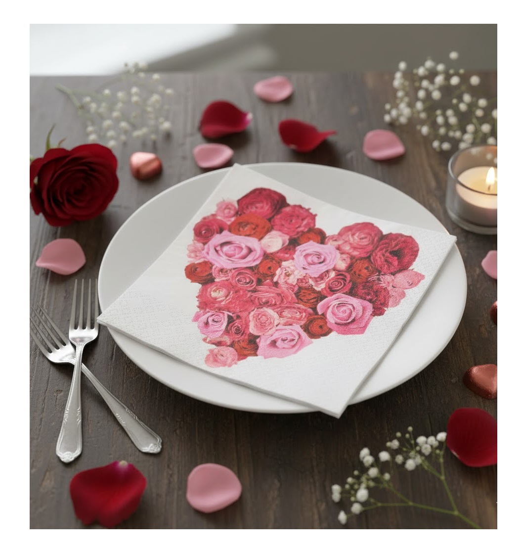 Apportez une touche de douceur et de romantisme à votre table avec ce lot de 20 serviettes de table en papier motif Cœur Roses. Idéales pour un dîner romantique, une réception, un événement festif ou un repas du quotidien, elles subliment votre décoration de table avec délicatesse.