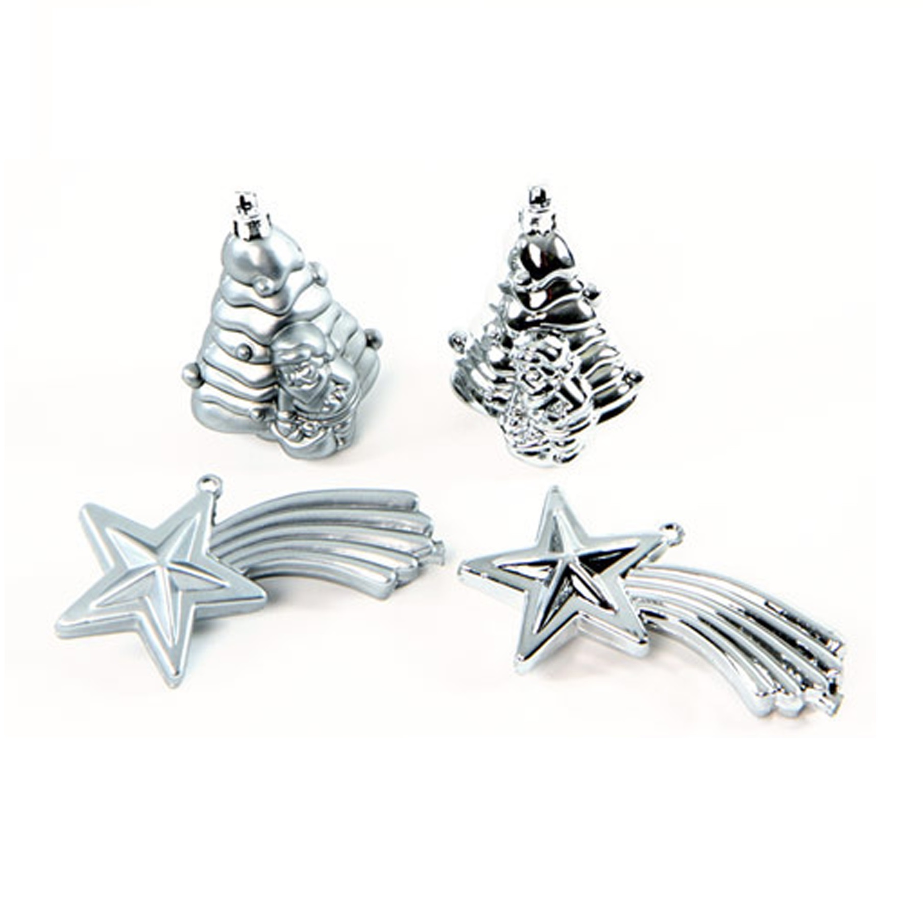 Comprenant 2 boules en forme de sapin et 2 boules en forme d’étoile, ce set combine finitions brillantes et mates pour un rendu festif et raffiné.