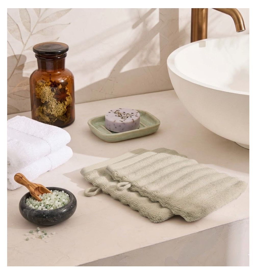 Apportez douceur et praticité à votre routine avec le lot de 2 gants de toilette Maia.