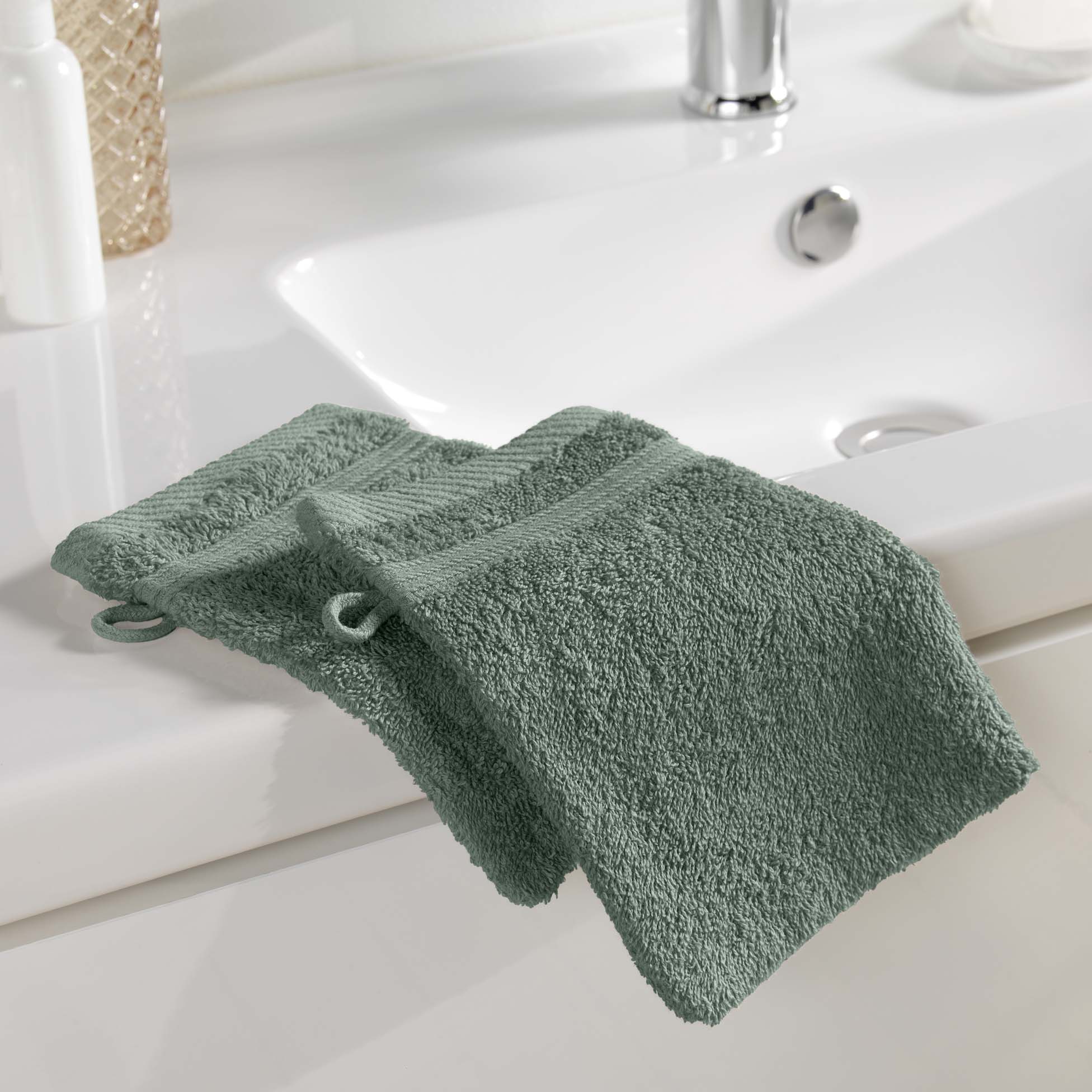 Lot de 2 gants de toilette 15 x 21 cm Tendresse vert cèdre