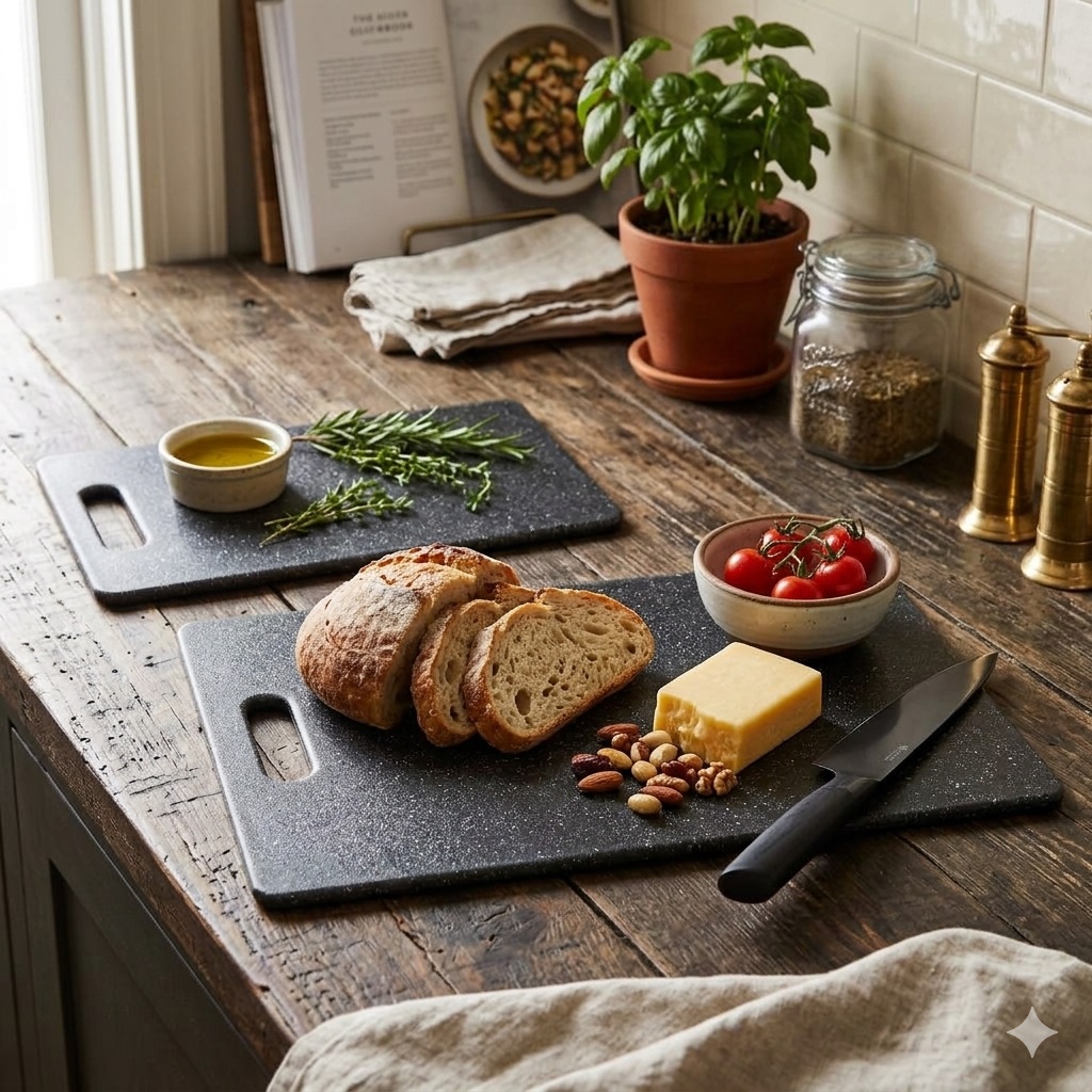 Optimisez votre cuisine avec ce lot de 2 planches à découper effet pierre, alliant design moderne et grande praticité.