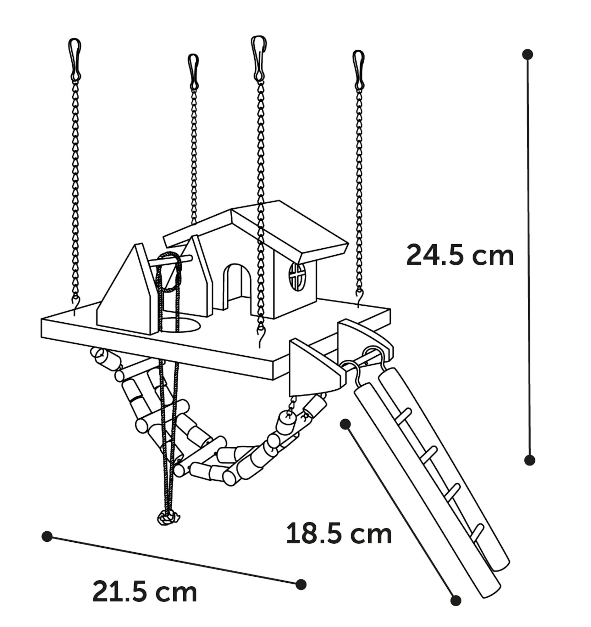 Dotée d’une plateforme, d’une échelle et d’un pont, elle favorise l’exercice et contribue à l’usure naturelle des dents.