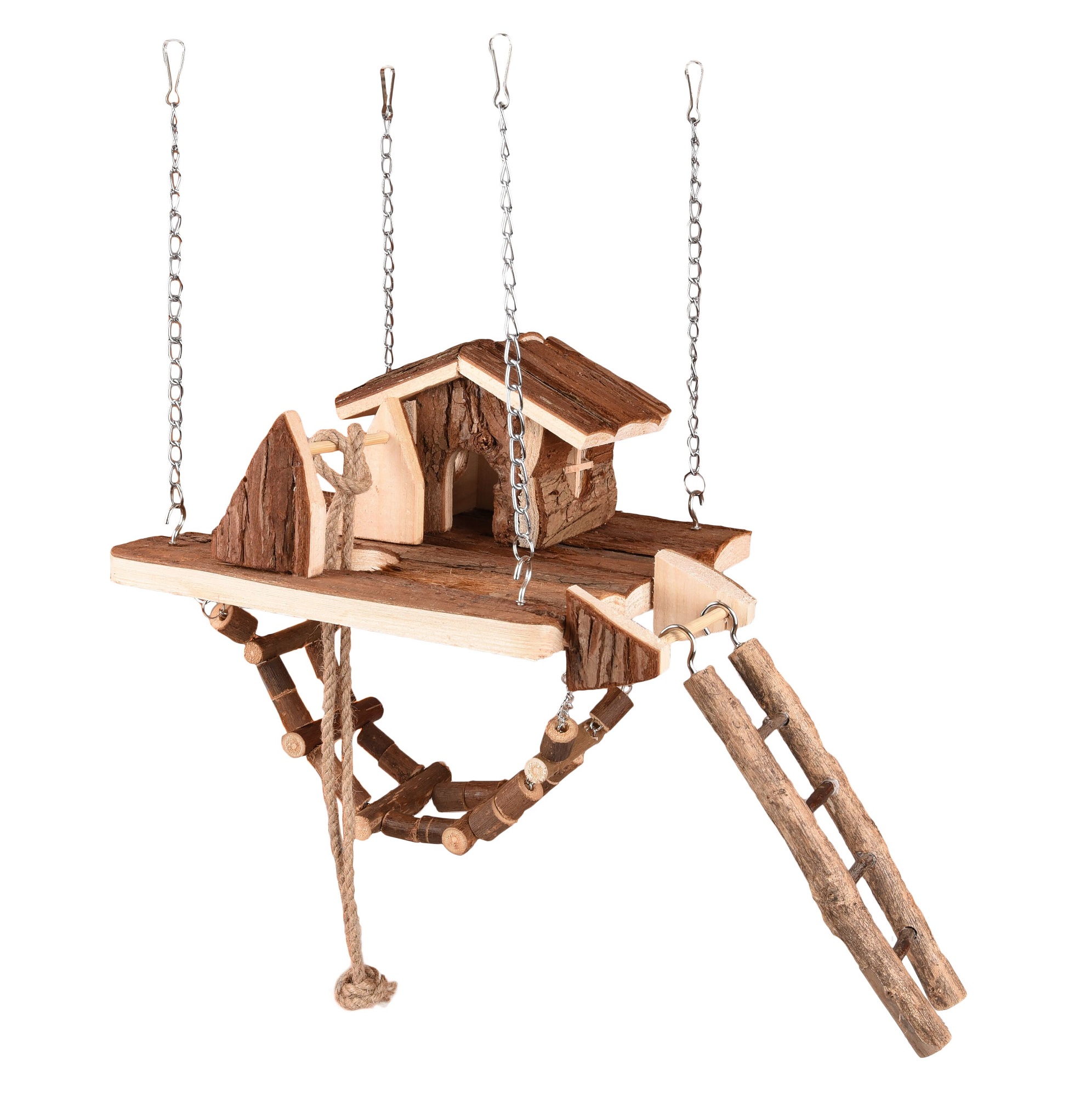 - Maison en bois avec pont suspendu intégré