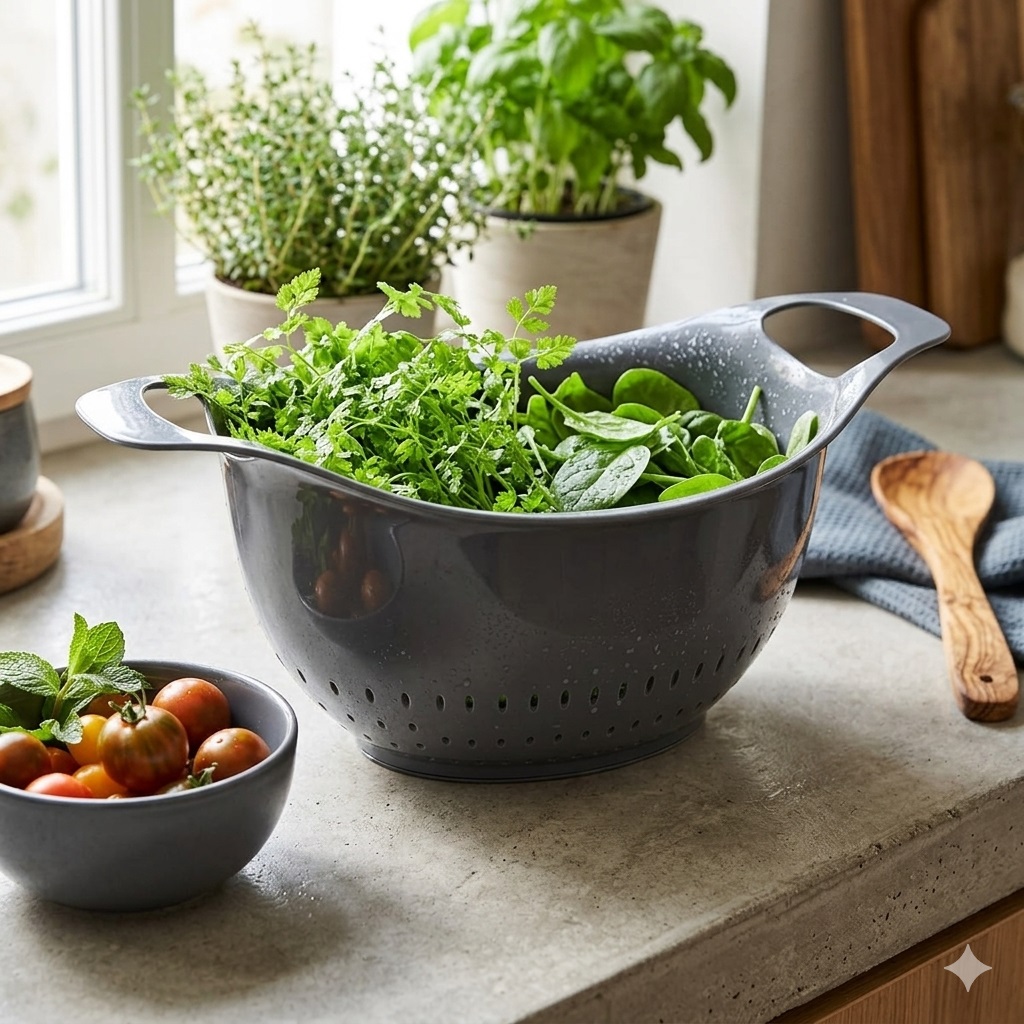Grâce à son anse confortable et ses poignées larges, elle assure une excellente prise en main pour égoutter facilement pâtes, légumes, fruits ou riz.