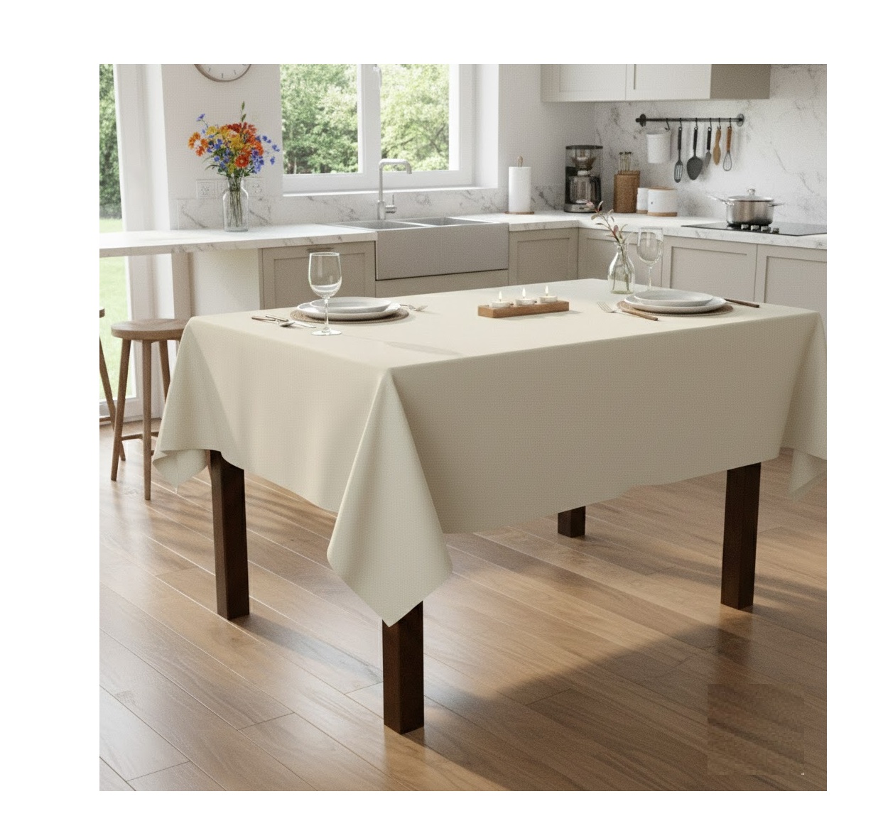 Les accessoires présents sur le visuel ne sont pas vendus avec la nappe.