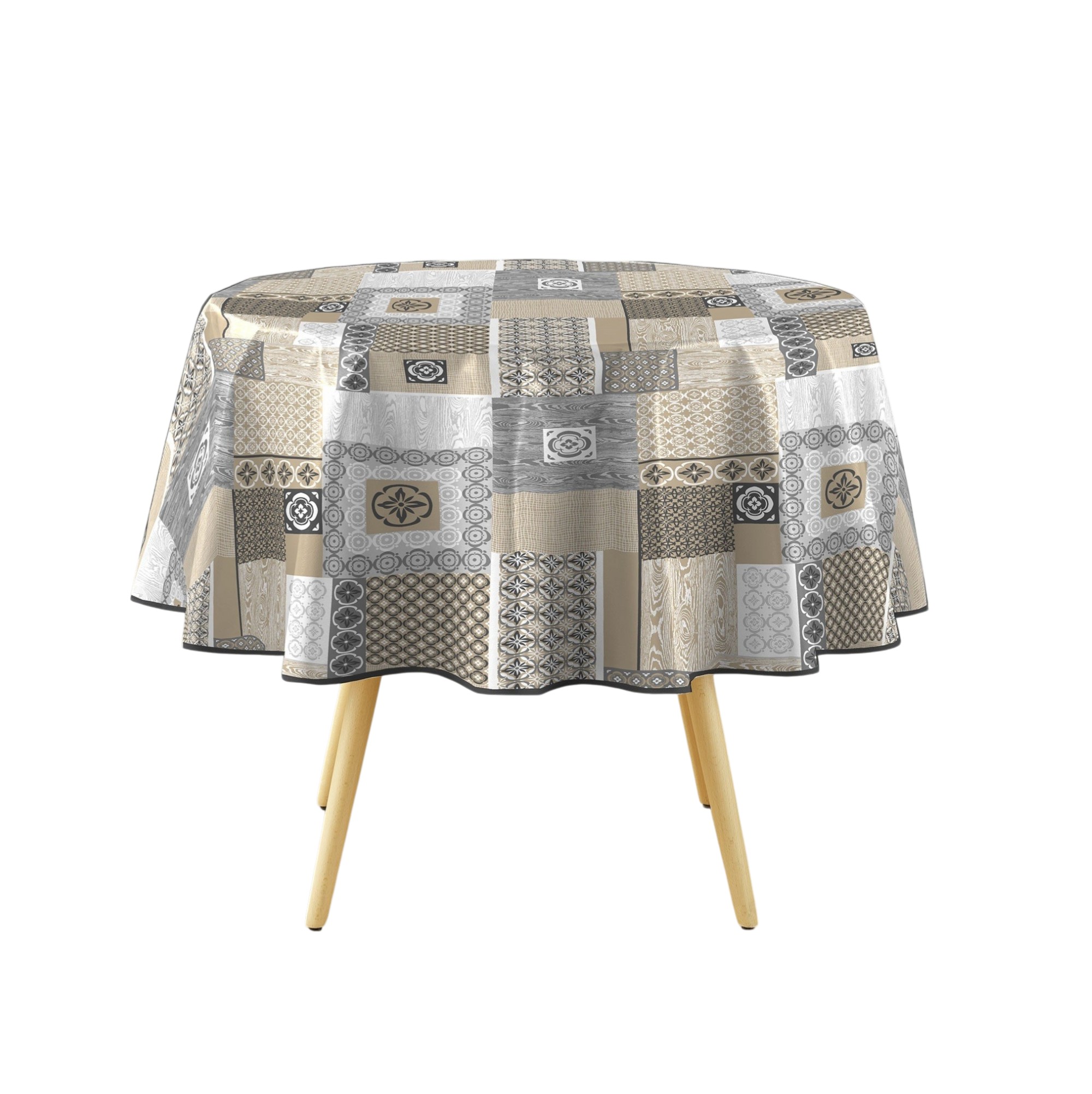 Apportez du caractère et de la modernité à votre table avec cette jolie nappe toile cirée ronde aux motifs patchwork. Son mélange harmonieux de teintes taupe, marron et gris crée une ambiance chaleureuse et tendance, idéale pour sublimer votre cuisine ou salle à manger.