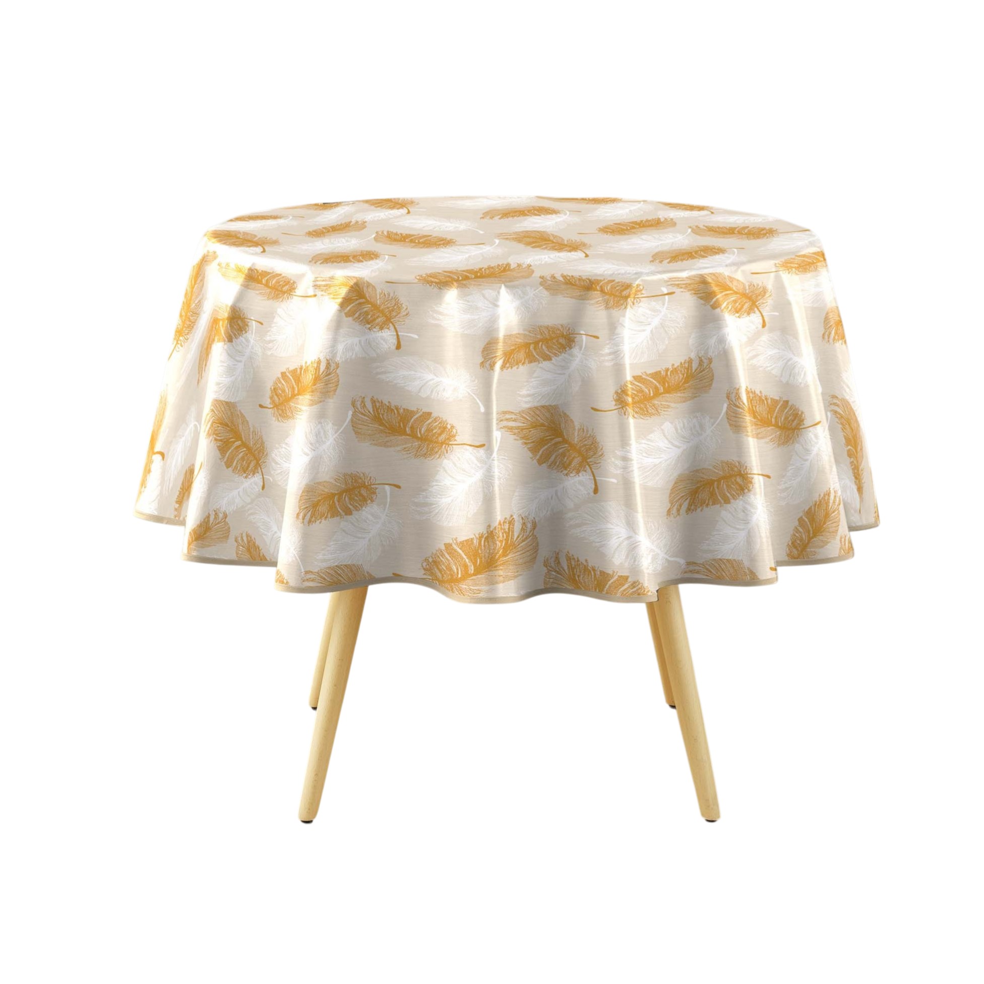 Les + produit : • Motif plumes dorées tendance et lumineux • Matière PVC souple, résistante et imperméable • Entretien facile : nettoyage rapide avec une éponge • Format idéal pour tables rondes • Parfaite pour un usage quotidien ou festif