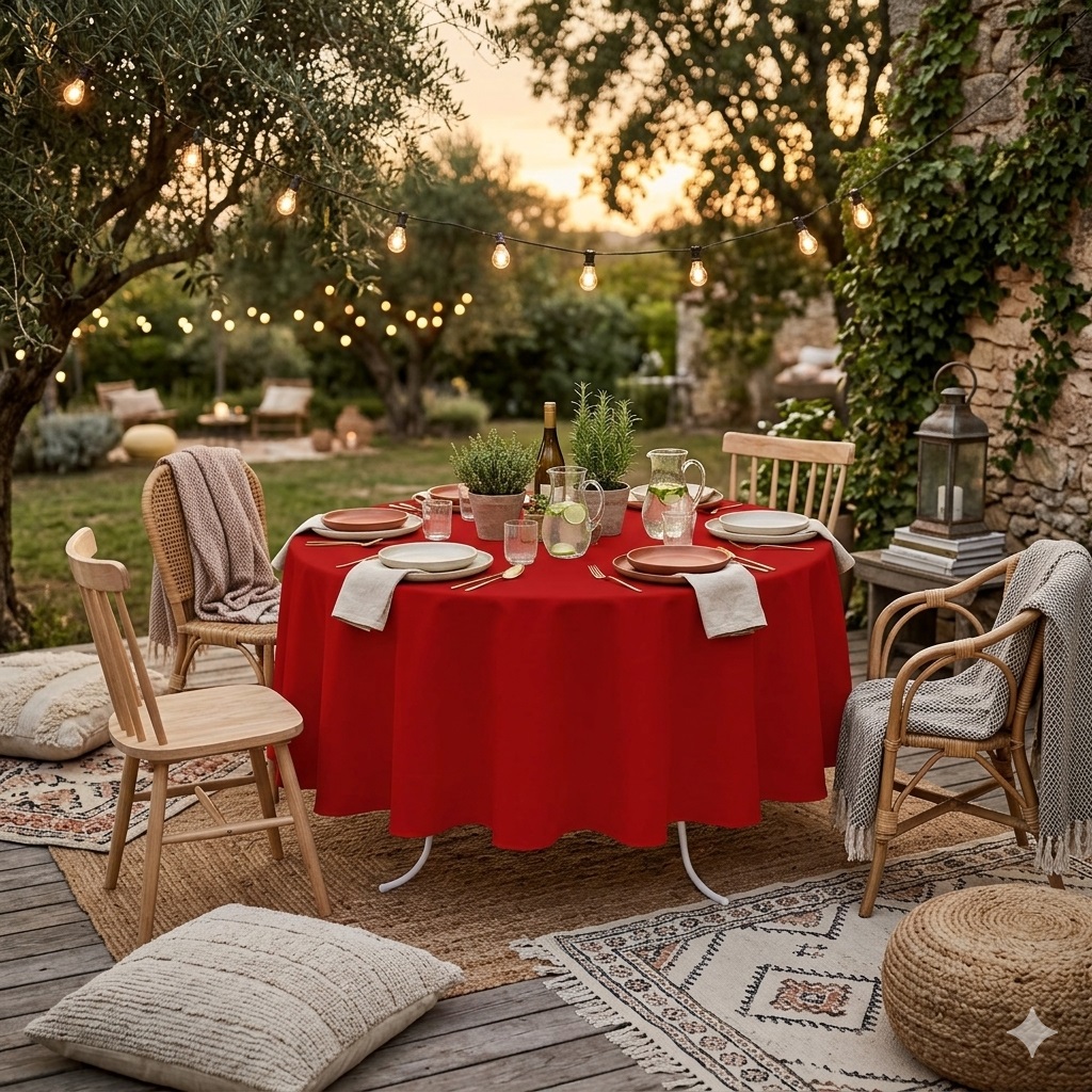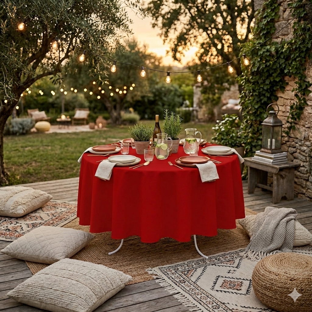 - Diamètre : 180 cm (table ronde)