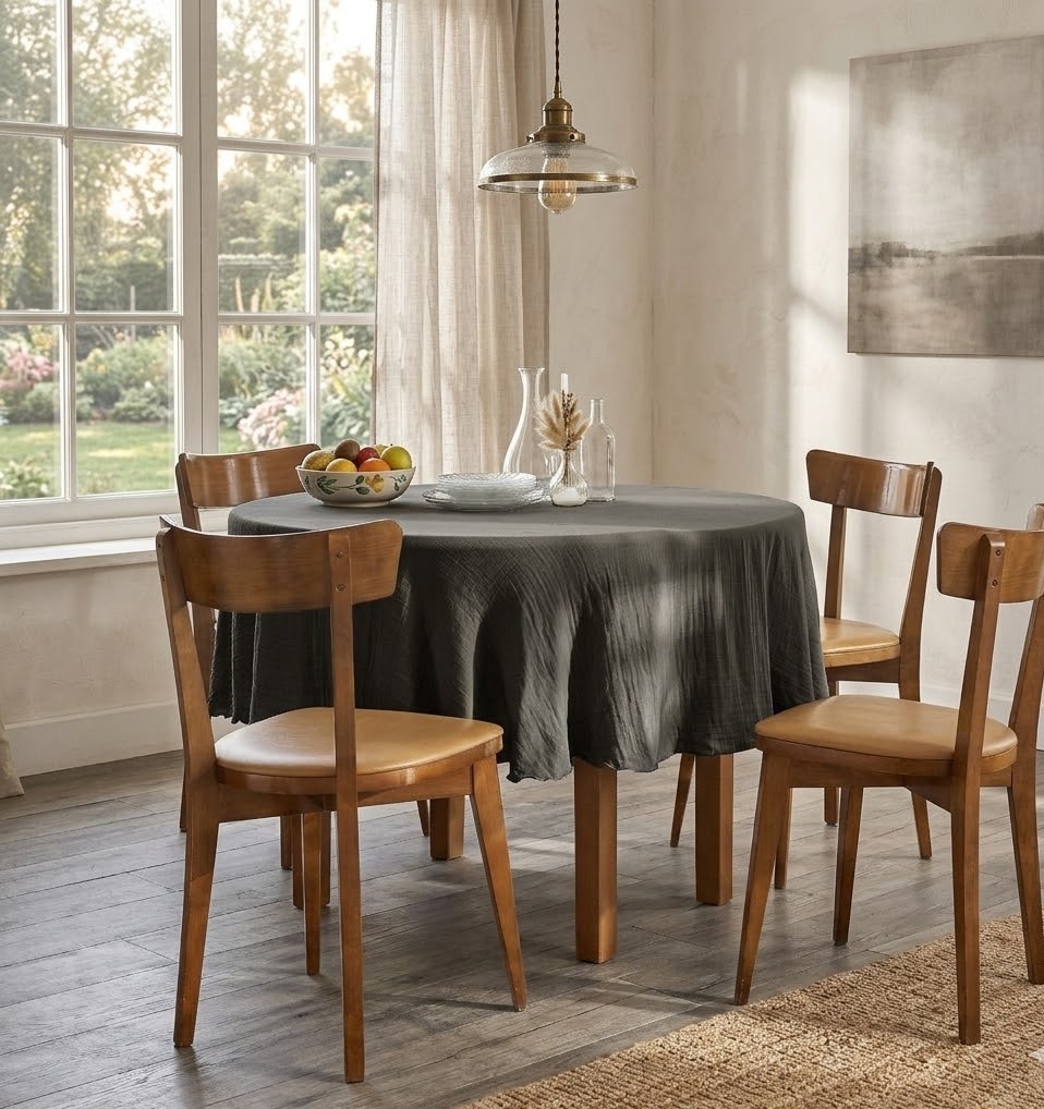 Son aspect légèrement froissé et sa teinte granit élégante créent une ambiance naturelle et raffinée, parfaite au quotidien comme pour vos moments conviviaux.