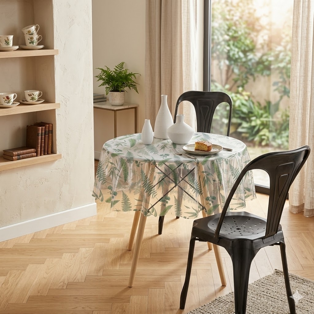 Apportez une touche de gaieté naturelle à votre cuisine ou salle à manger avec cette jolie nappe cristal imprimée feuillage vert. À la fois décorative et fonctionnelle, elle protège efficacement votre table tout en laissant apparaître sa matière grâce à sa transparence élégante.