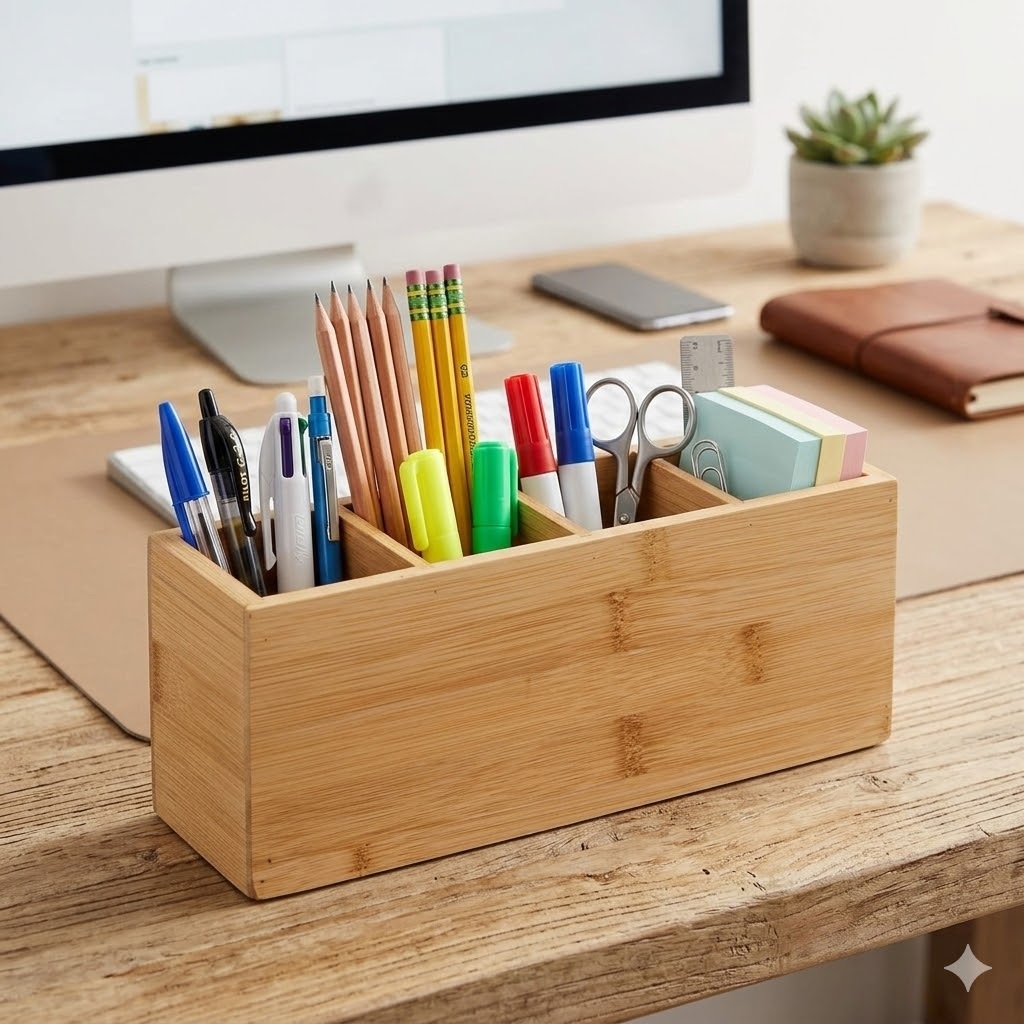 Cet organiseur en bois à 4 compartiments est l’allié idéal pour un intérieur bien rangé et stylé. Que ce soit dans la salle de bain pour les brosses et cosmétiques, dans la cuisine pour les ustensiles ou encore sur un bureau pour les fournitures, il offre une solution de rangement à la fois fonctionnelle et esthétique. Son design naturel en bois apporte une touche chaleureuse à votre déco tout en optimisant l’espace.