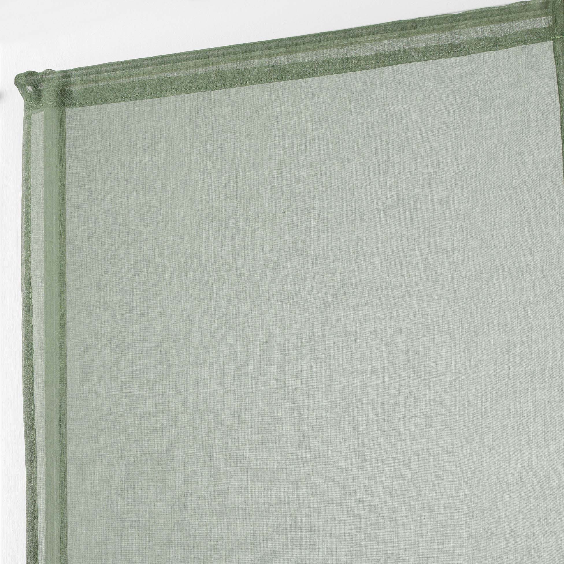 Caractéristiques : • Dimensions : 60 x 160 cm • Couleur : kaki • Matière : 100% polyester • Tissu : voile sable • Finition : passe tringle • Prêt à poser • Léger et lumineux • Installation facile et rapide