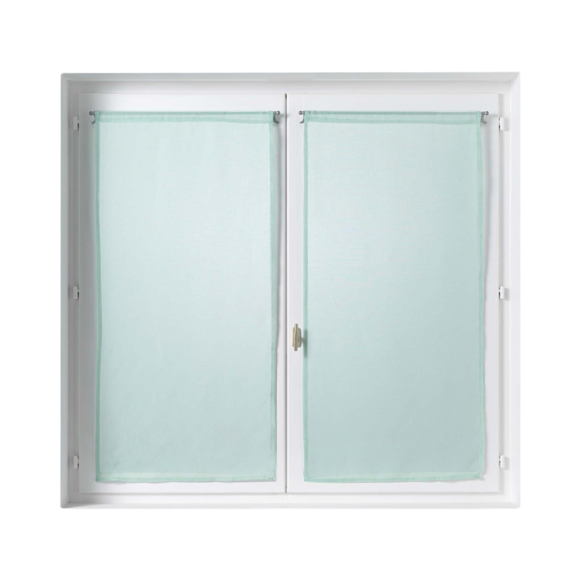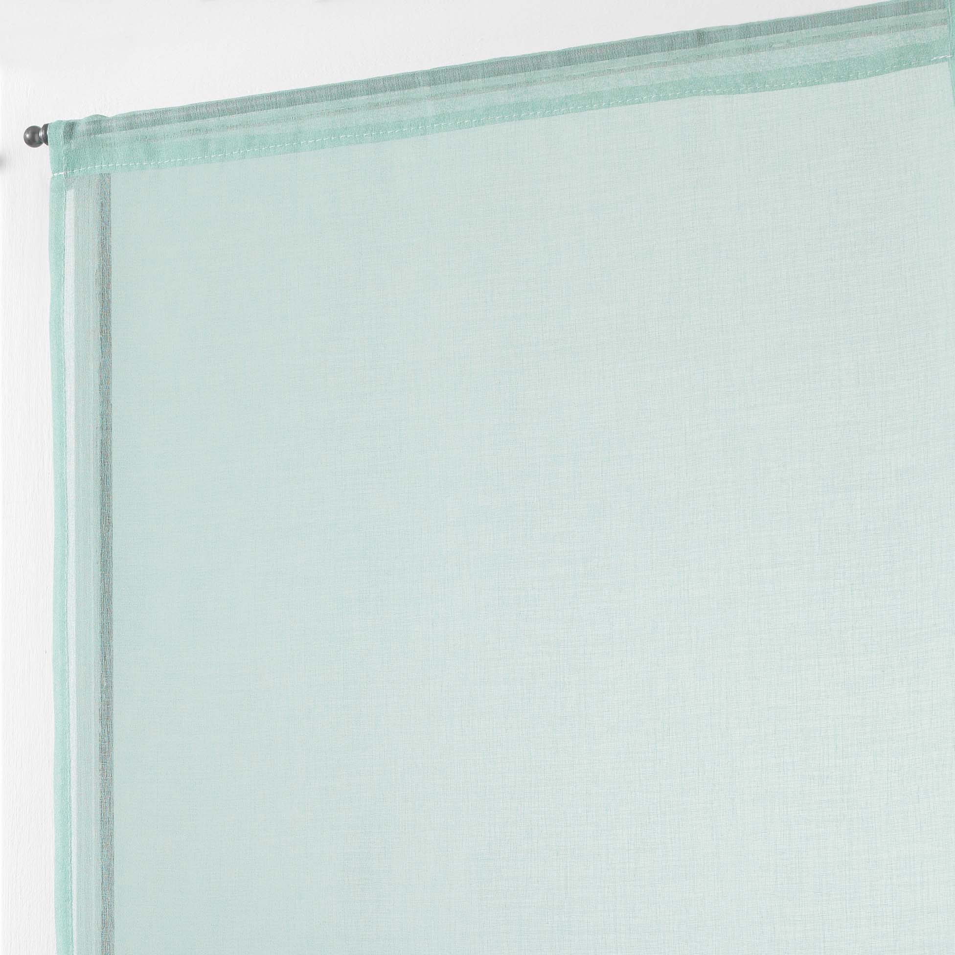 Caractéristiques : • Dimensions : 60 x 90 cm • Couleur : menthe • Matière : 100% polyester • Tissu : voile sable • Finition : passe tringle • Prêt à poser • Léger et lumineux • Installation facile et rapide
