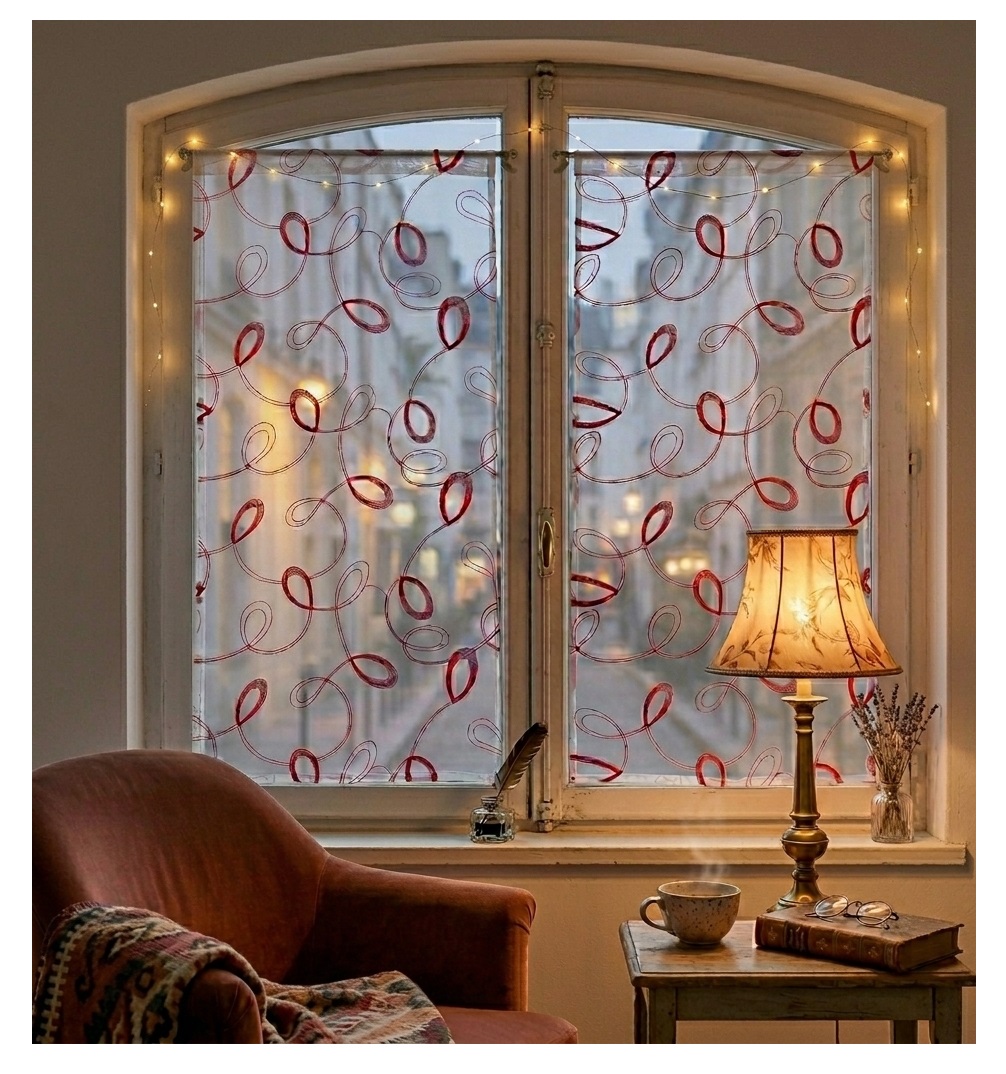 Caractéristiques : • Dimensions : 60 x 120 cm • Couleur : rouge • Matière : 100% polyester • Tissu : voile sable brodé • Finition : passe tringle • Prêt à poser • Léger et lumineux • Entretien facile