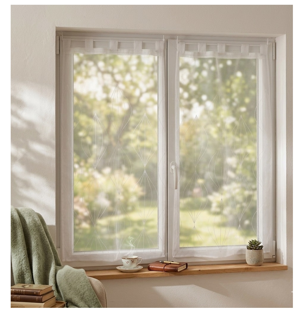 Paire de rideaux voile sable brodé au style chic et élégant, idéale pour sublimer vos fenêtres.