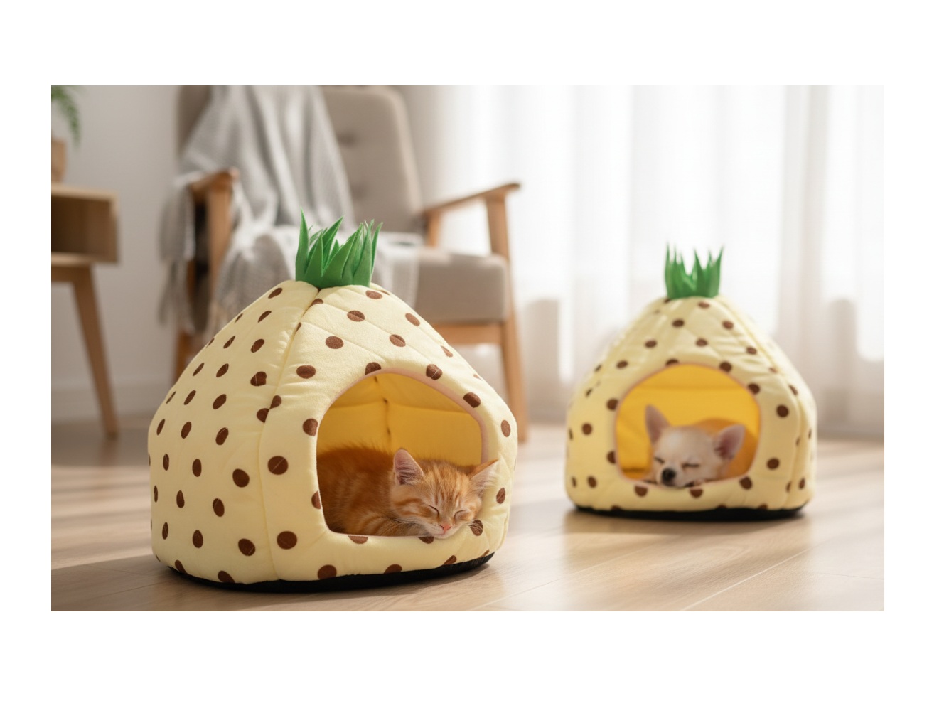 L’espace sommeil Olga offre à votre chat un cocon à la fois confortable, ludique et rassurant. Son design original en forme de fruit (ananas) apporte une touche décorative et joyeuse à votre intérieur tout en créant un véritable refuge pour le repos de votre compagnon.